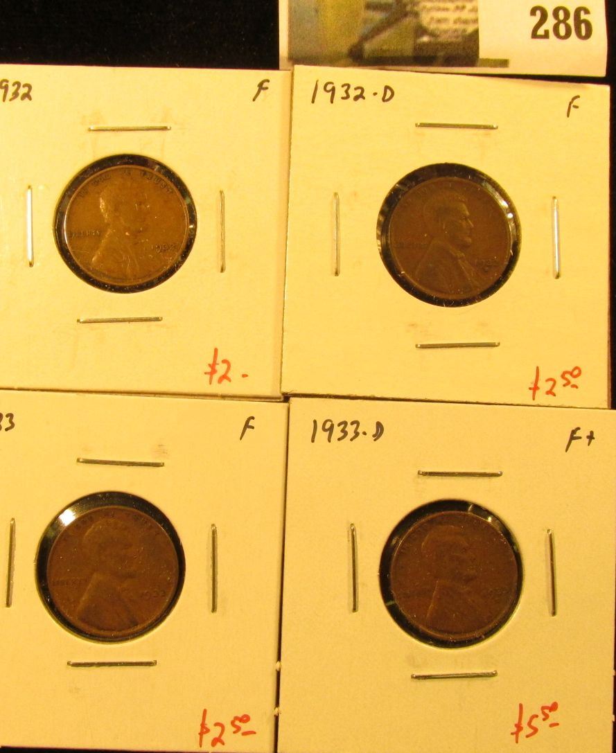 Group of 4 Lincoln Cents, 1932 F, 1932-D F, 1933 F & 1933-D F+, group value $12+