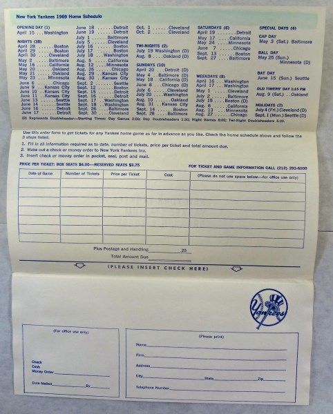 1969 Yankees Ticket Order Form, 1954 Indians Spring Training Schedule, 1964 Houston Colt .45s Faux Autograph Sheet & April 1973 REDS-LETTER