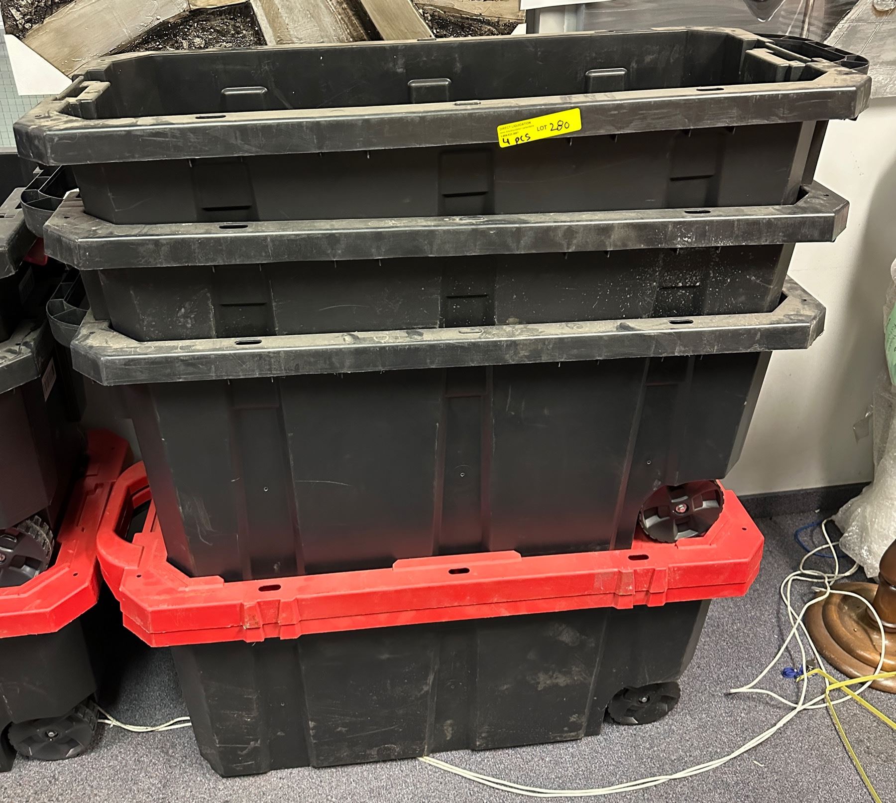 Group of 4 husky containers w/ wheels (approx 44" W x 20: L x 19" H)