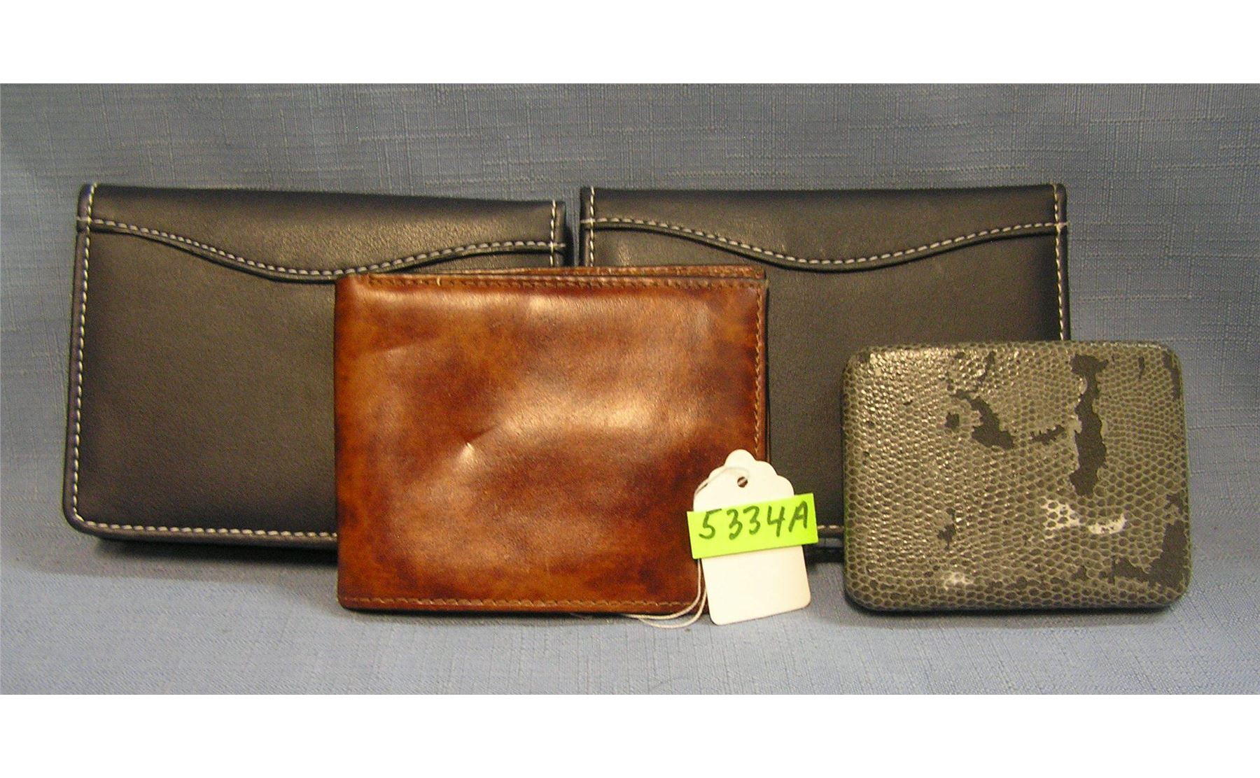 Group of 4 quality wallets and cases includes a leather Perry Ellis wallet est, value $40.00-$50.00