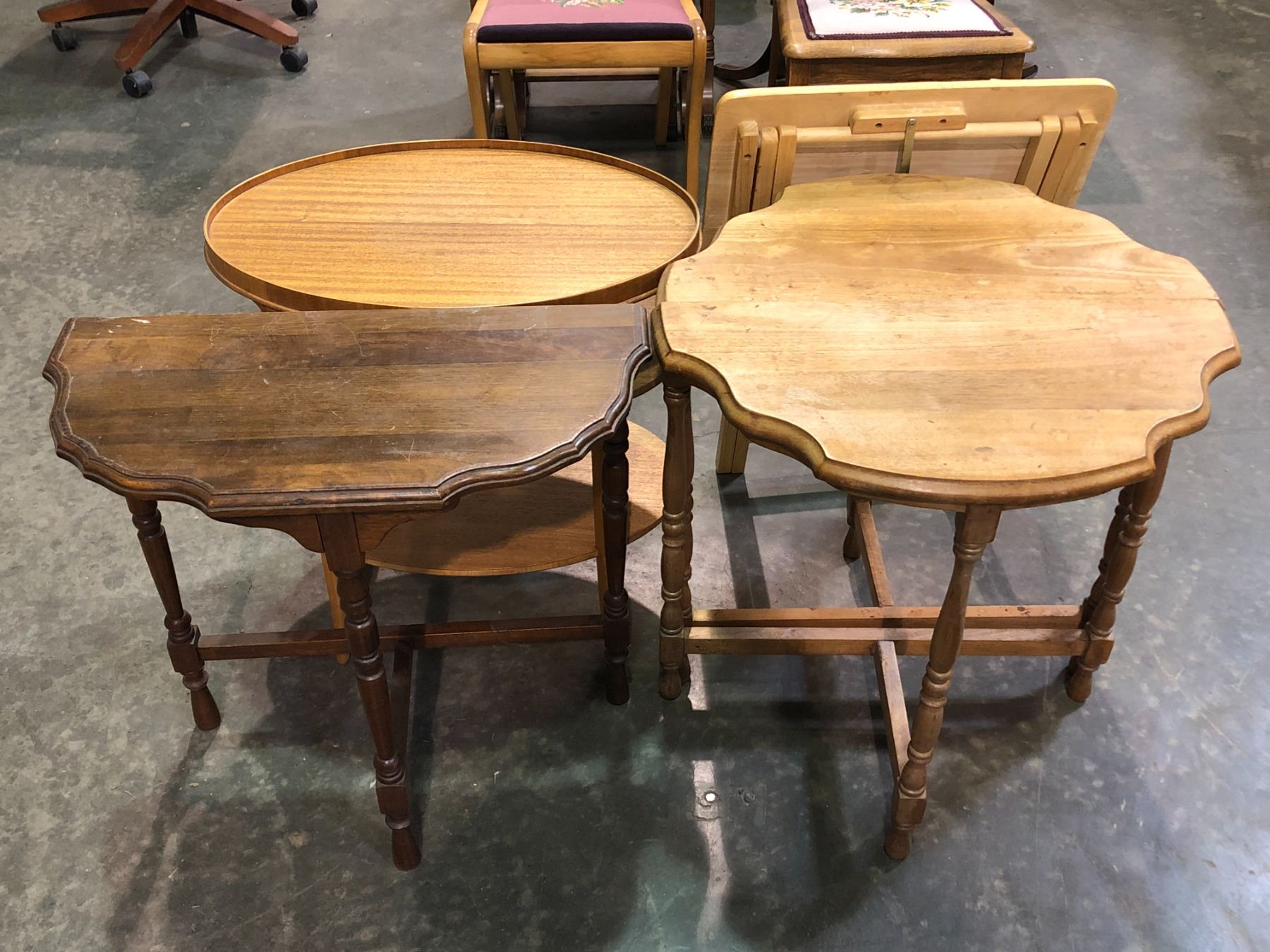 Group of 4 side tables - approx 24" H & folding tray table