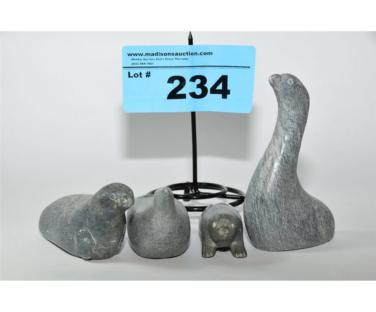Group of 4 small Inuit soapstone carvings