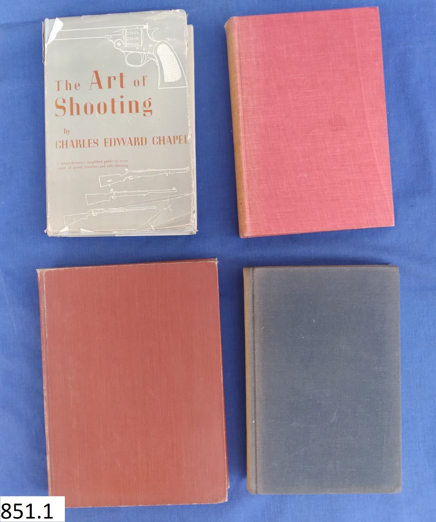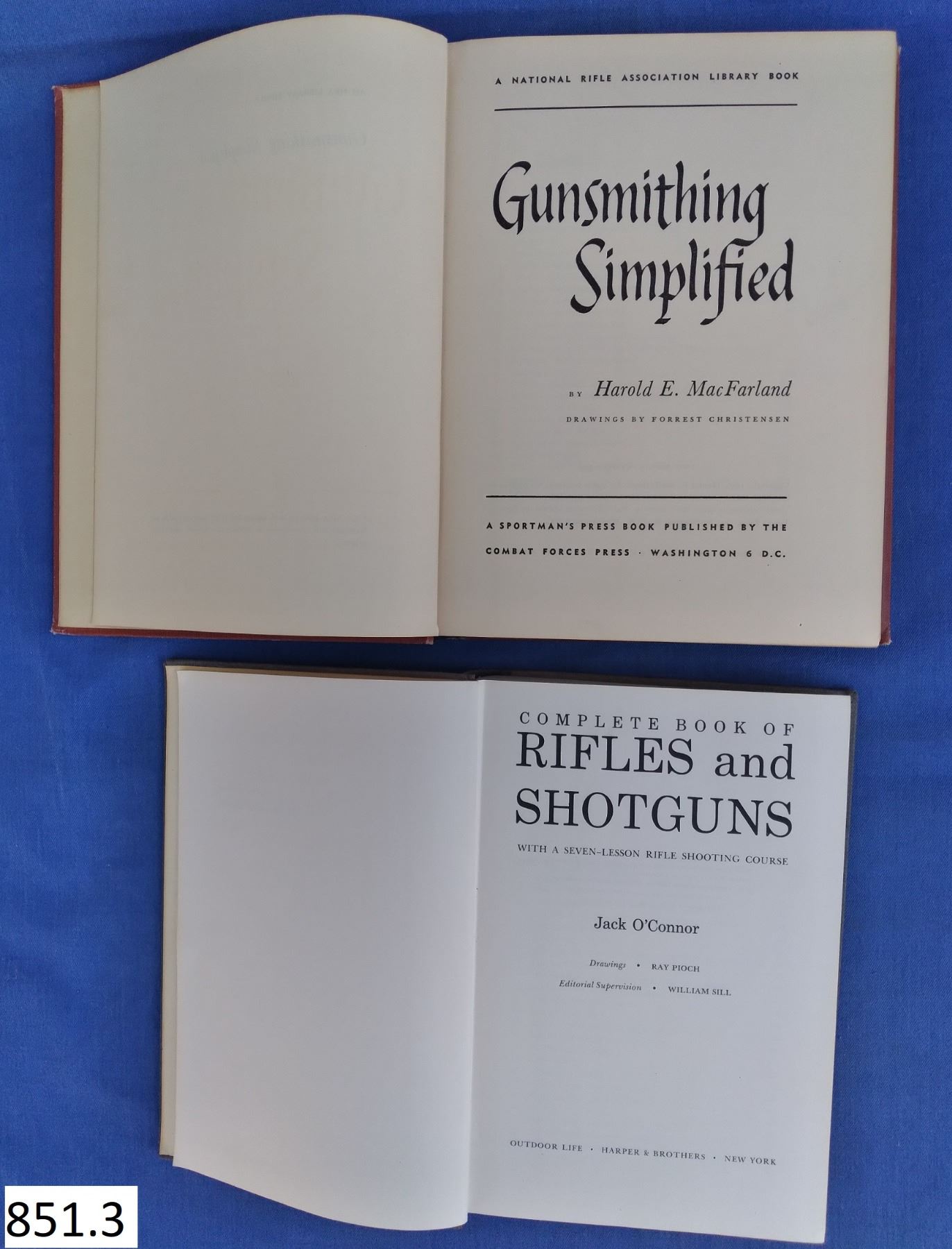 Group of 4 vintage Gun/Rifle/Revolver/Gunsmithing books including "Gunsmithing Simplified", "Complete Book of Rifles and Shotguns", "The Art of Shooting", and "Fast and Fancy Revolver Shooting & Police Training".