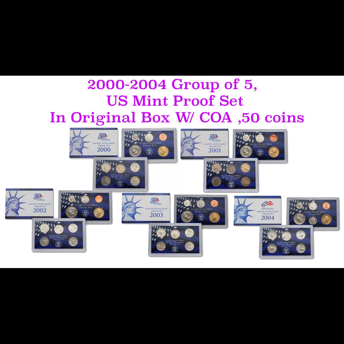 Group of 5, 2000-2004 Mint Proof Set In Original Case,50 coins