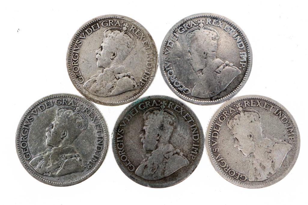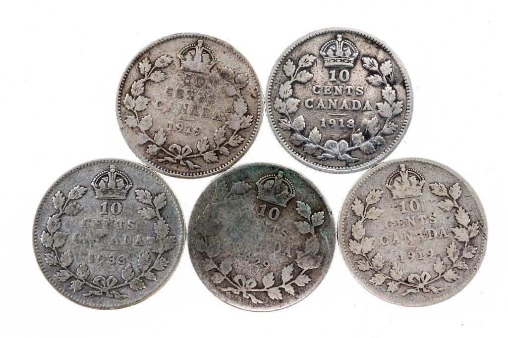Group of 5 Canada Historical Silver Ten cents - Pre 1937