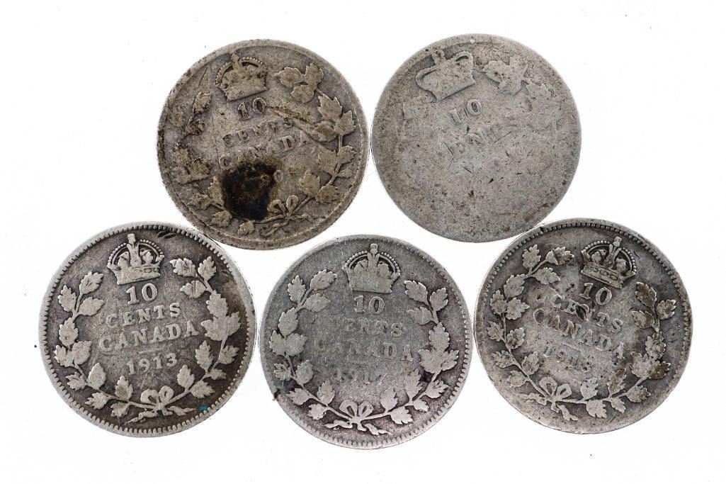 Group of 5 Canada Historical Silver Ten cents - Pre 1937