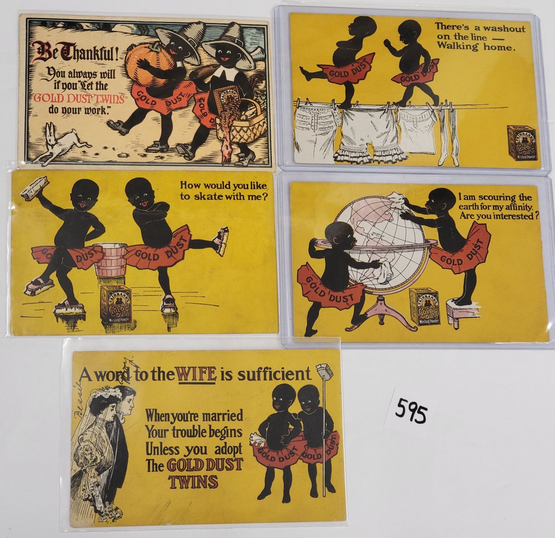 Group of 5 Gold Dust Twins Advertising Black Americana Postcards.