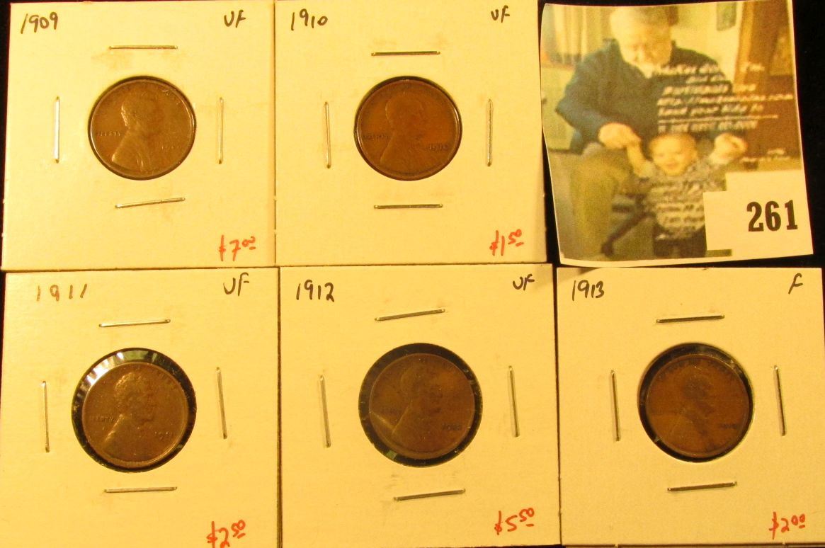 Group of 5 Lincoln Cents, 1909 VF, 1910 VF, 1911 VF, 1912 VF & 1913 F, group value $18.50