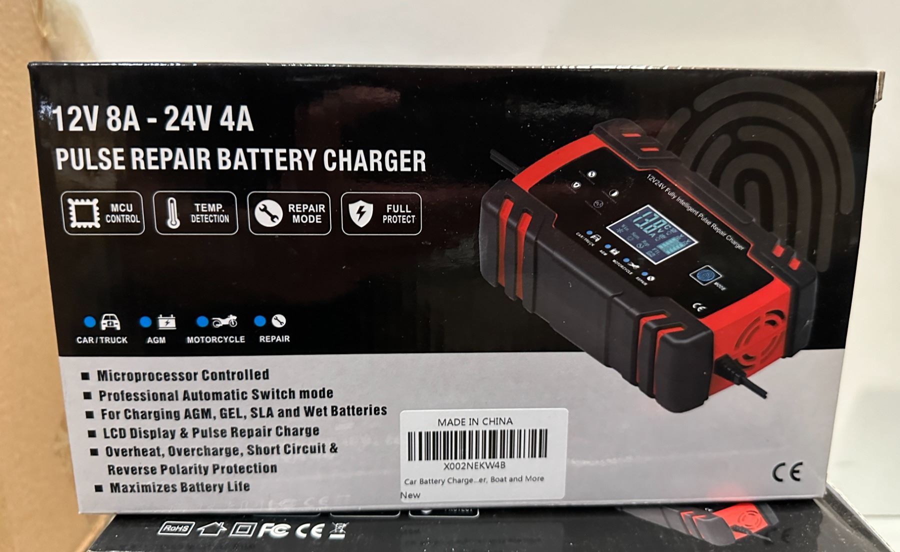 Group of 5 SUHU Car Battery Charger, 12V/8A 24V/4A Smart Automatic Battery Charger Automotive Trickle Charger for Car Truck Motorcycle Lawn Mower Boat Marine RV SUV ATV SLA Wet AGM Gel Cell Lead Acid Battery