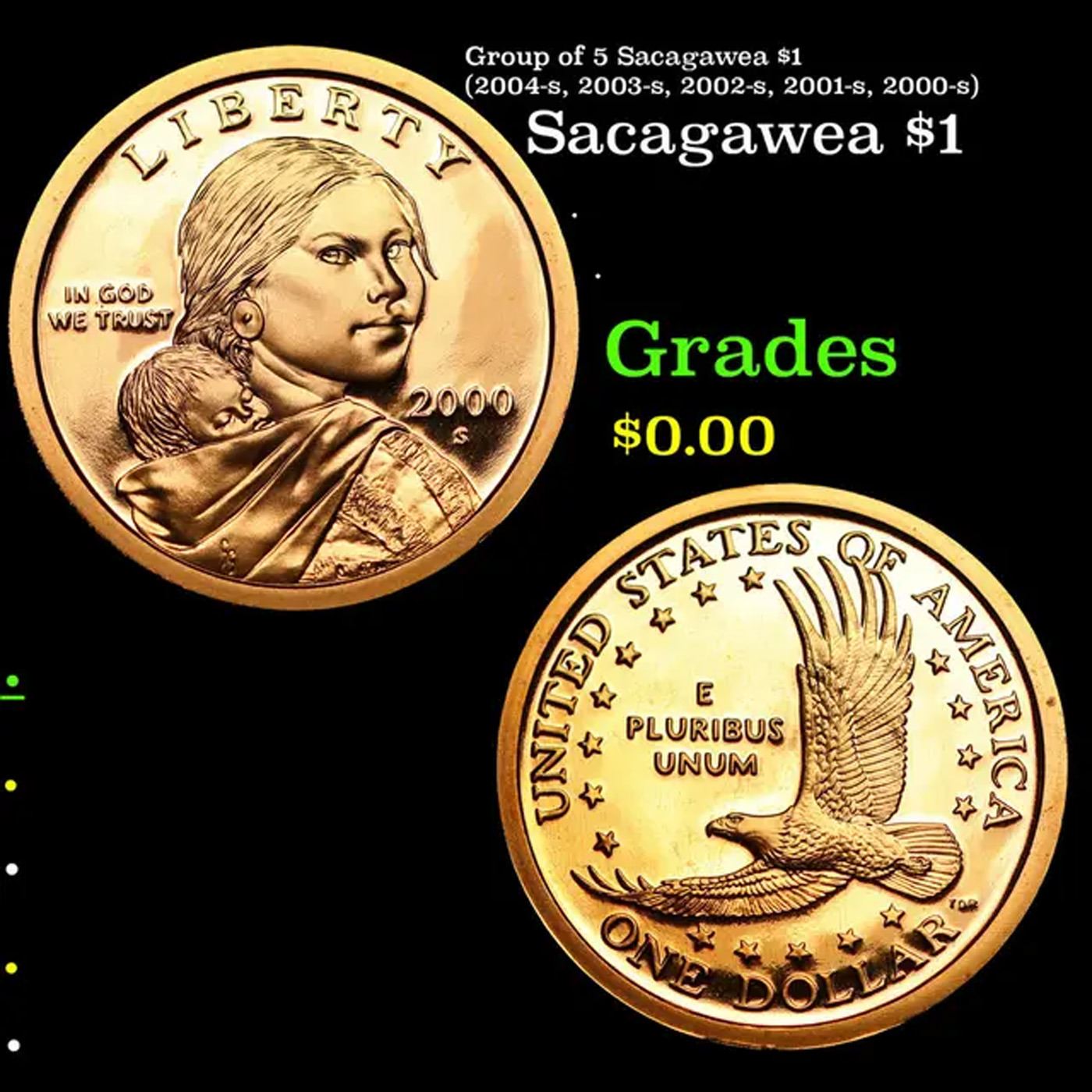 Group of 5 Sacagawea $1 (2004-s, 2003-s, 2002-s, 2001-s, 2000-s).