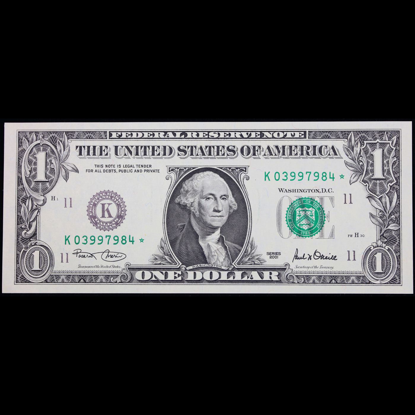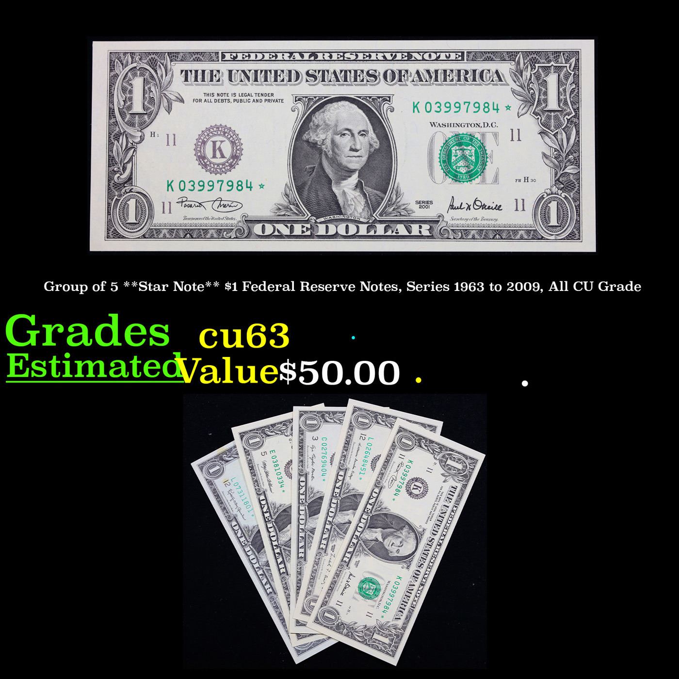 Group of 5 **Star Note** $1 Federal Reserve Notes, Series 1963 to 2009, All CU Grade Grades Select CU.
