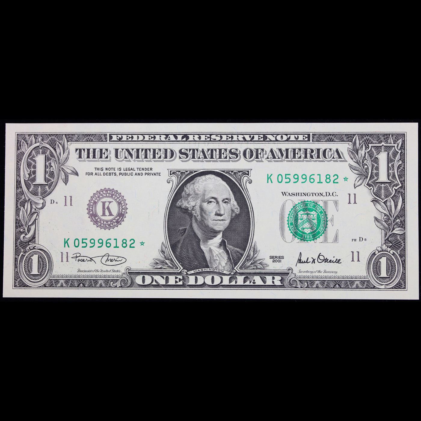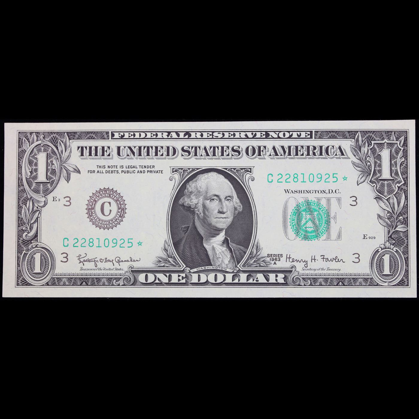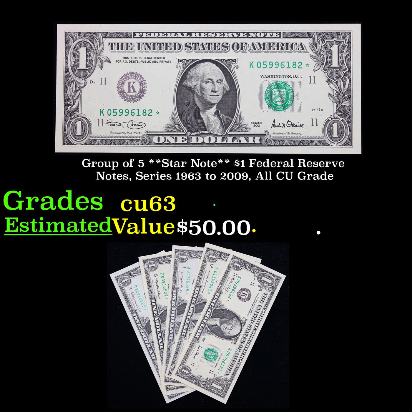 Group of 5 **Star Note** $1 Federal Reserve Notes, Series 1963 to 2009, All CU Grade Grades Select CU.