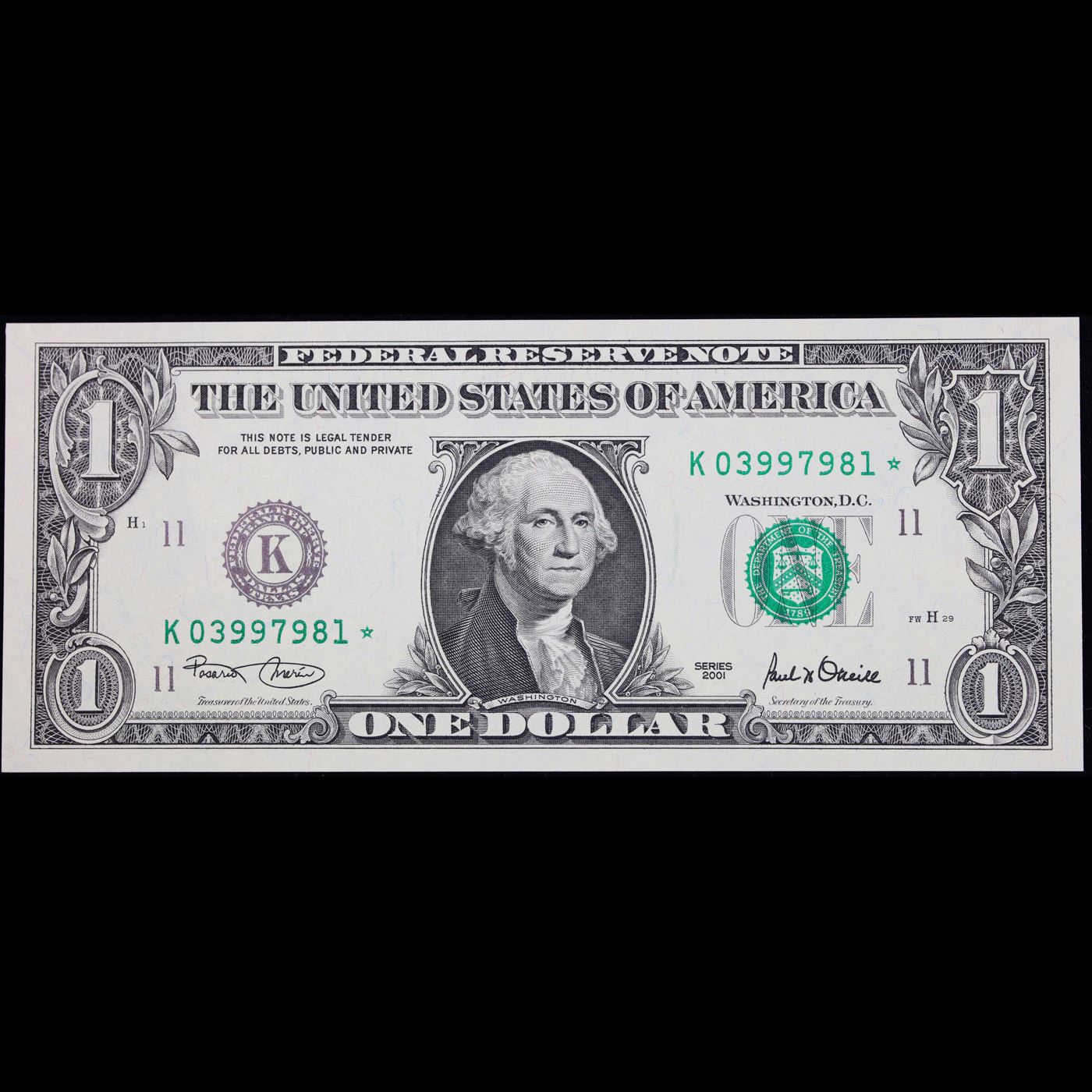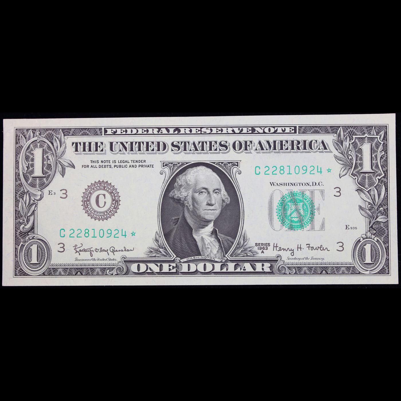 Group of 5 **Star Note** $1 Federal Reserve Notes, Series 1963 to 2009, All CU Grade Grades Select CU.