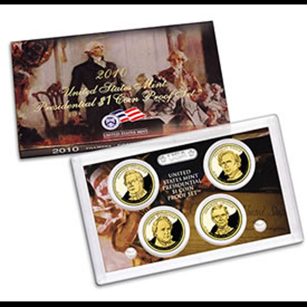 Group of 5 United States Mint Presidential Dollar Proof Sets 2007-2011 20 coins. Group of 5 Presidential Dollar Proof Sets. Dates range from 2007-2011. The 2007 set has George Washington, John Adams, Thomas Jefferson, and James Madison. This was the first year of the series and this set is very popular. The 2008 set has James Monroe, John Quincy Adams, Andrew Jackson, and Martin Van Buren. This was the second year of the series and as with all 2008 mint items was short produced and hard to find. The 2009 set has William Henry Harrison, John Tyler, James K. Polk, and Zachary Taylor. The 2010 set has Abraham Lincoln, Millard Fillmore, Franklin Pierce, and James Buchanan. The 2011 set has Andrew Johnson, Ulysses S. Grant, Rutherford B. Hayes, and James Garfield. All Sets Complete in Original Packaging with COA.