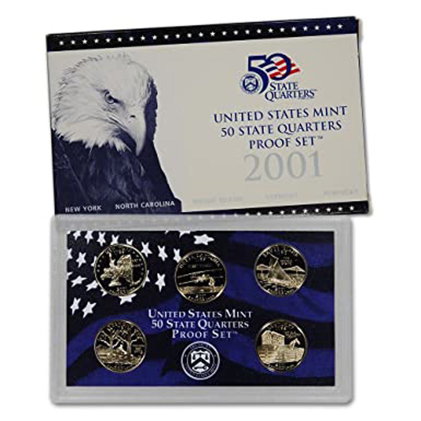 Group of 5 United States Quarters Proof Sets 1999-2003 25 coins. Group of 5 United States Quarters Proof Sets. Dates are 1999-2003. . Complete with Original Packaging and COA. The 2000-2003 Sets contain 5 Proof State Quarters. Complete with Original Packaging and COA.