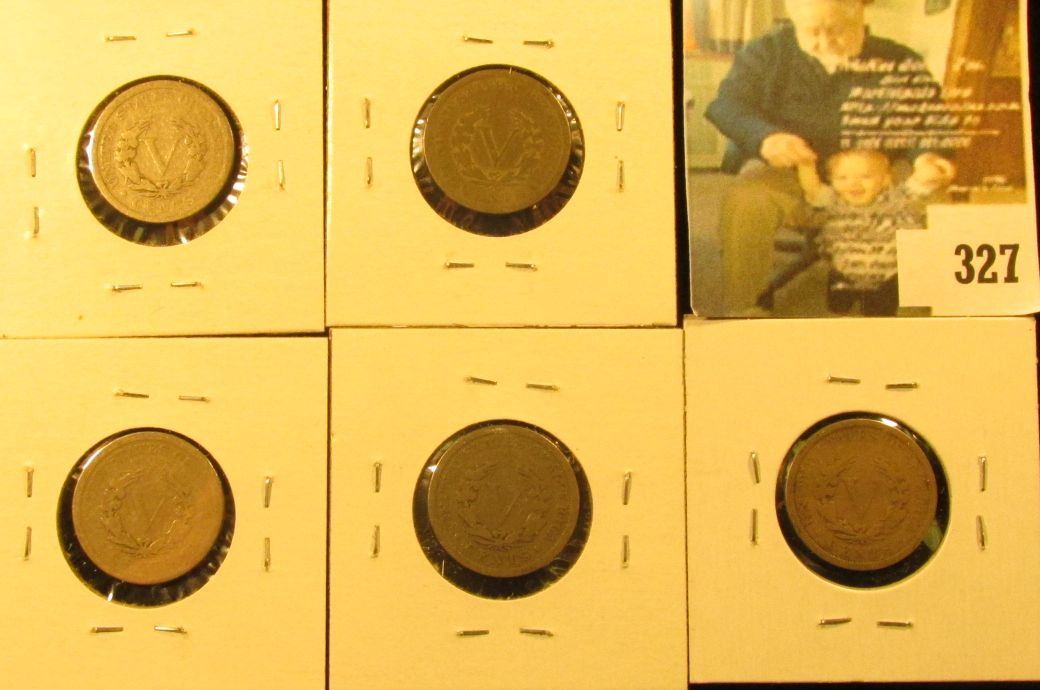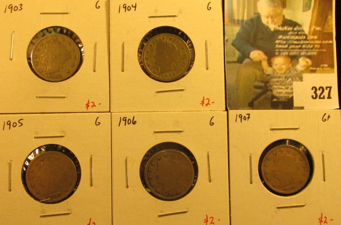 Group of (5) V Nickels, 1903, 1904, 1905, 1906 & 1907, all G, group value $10