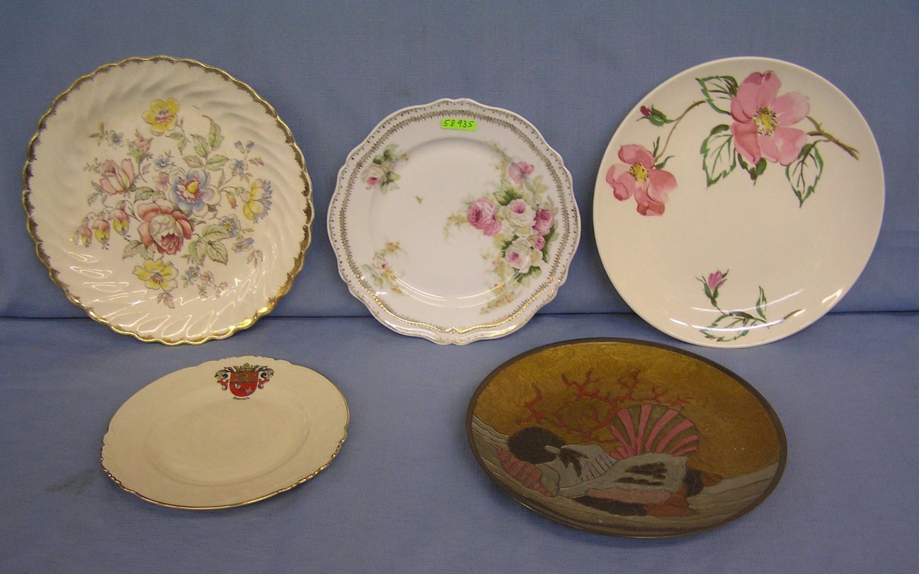 Group of 5 collectable plates includes 3 that are floral decorated including Royal of Austria, Sweet Briar by Knowela, Royal China, 1 German Bayreuth with crest mark, est. value $125.00-$150.00