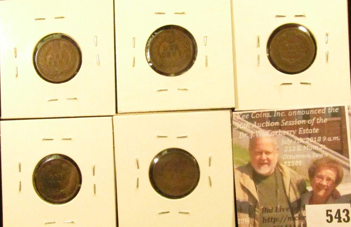 Group of 5 different Indian Head Cents – 1892, 1893, 1895, 1898, all F, 1894 (better date), G, group value $25