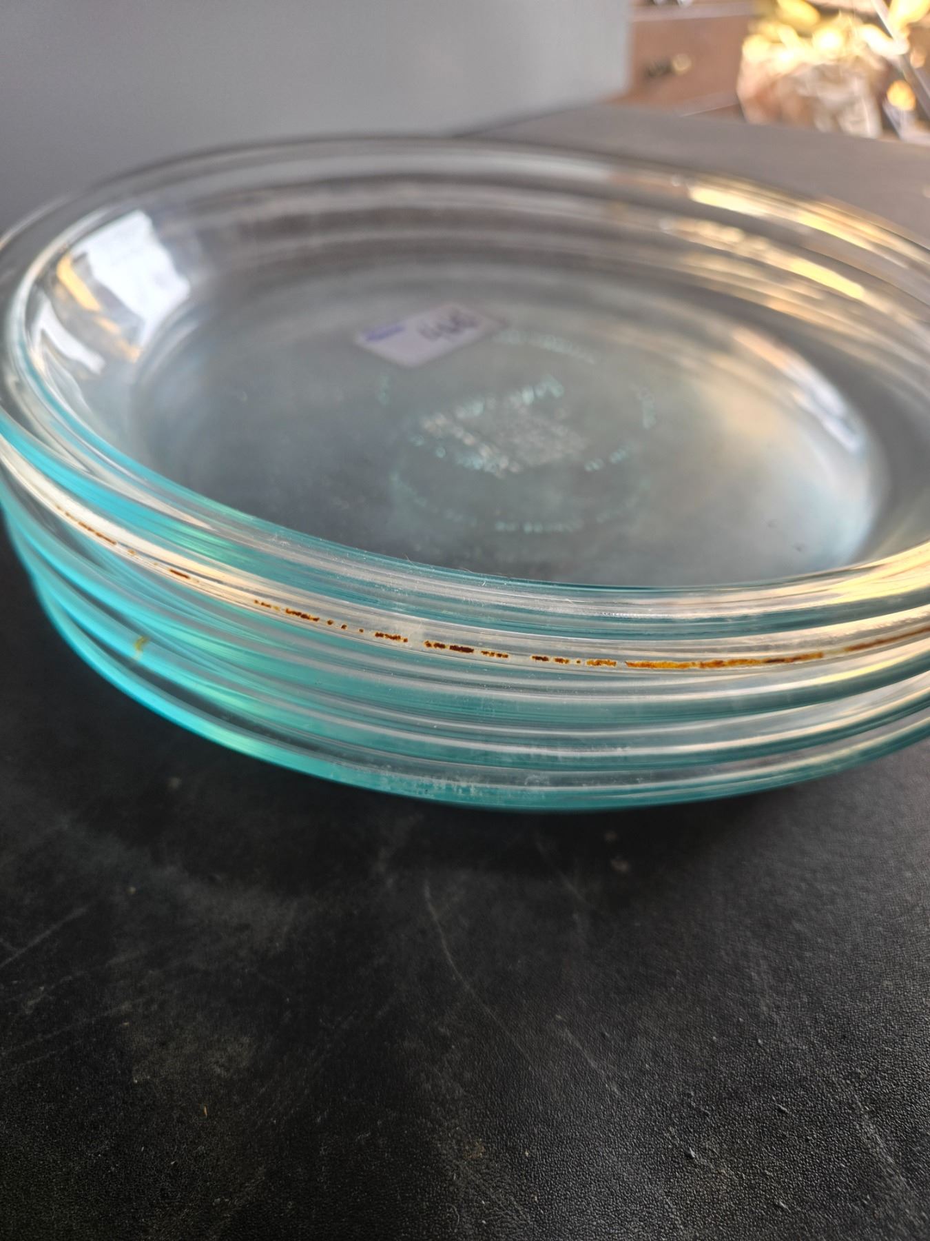 Group of 5 pyrex pieplates -blue tinmt 10 inmch size