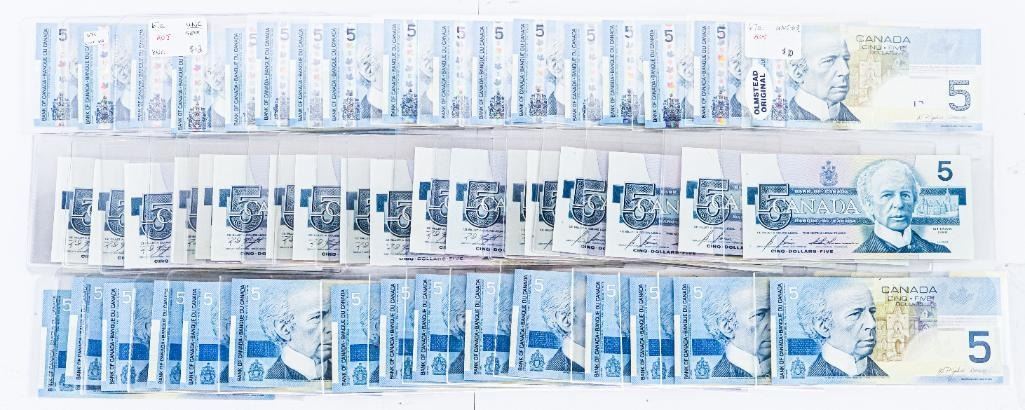 Group of 52 Canada $5 Notes GEM UNC + 1986 - 2006 Mixed