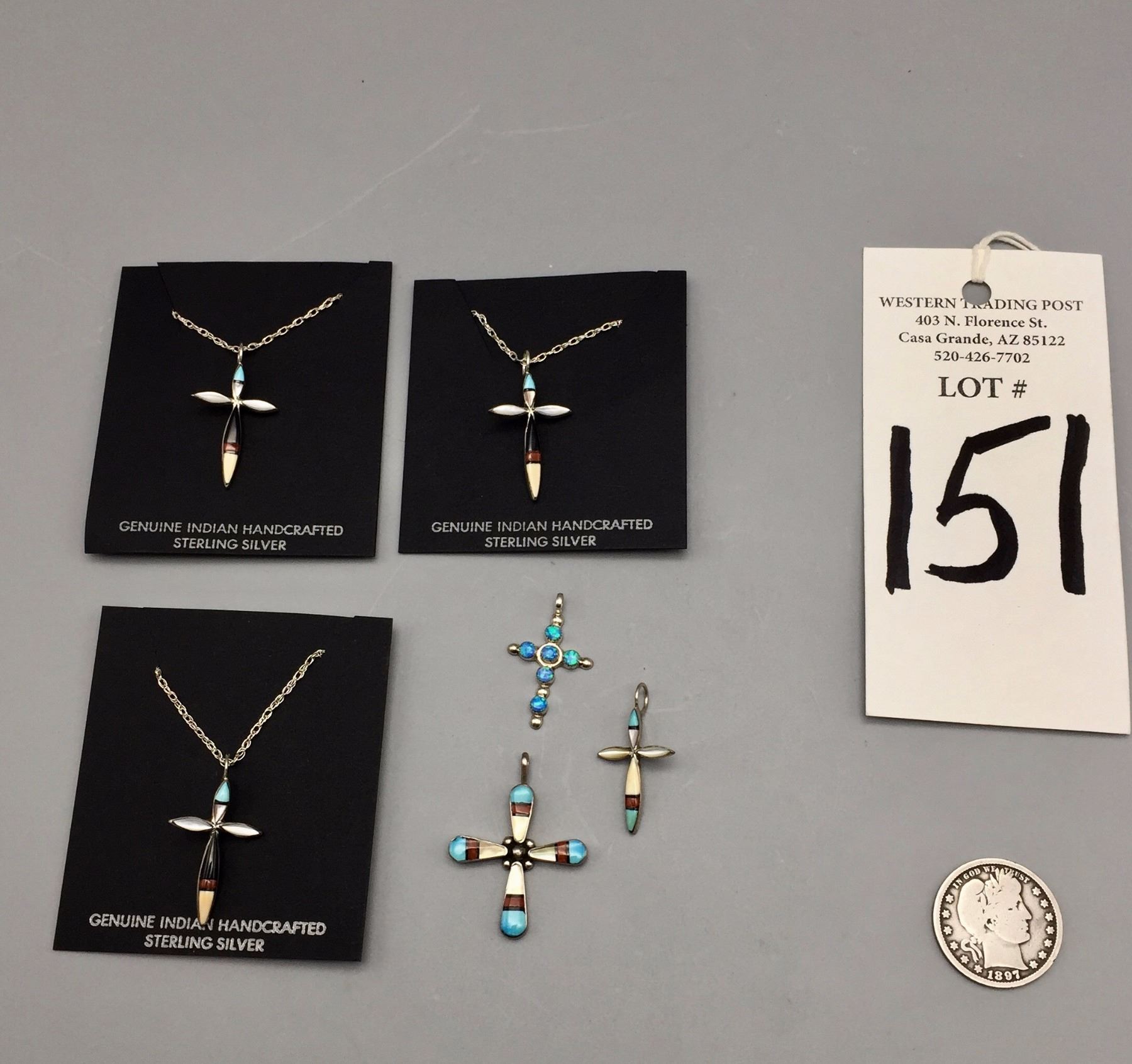 Maker: Most are hallmarked LB. Approx. Age: Fairly modern. Size: Crosses are approx. 1” wide x just over 1” tall. Lot weighs 19.7 g. Additional Info: Group of 6 cross necklaces. Condition: Good. NOS from an old dealer’s stash who retired (now in his 80s). Please look closely at the pictures - they are an important part of our description. Shipping: There will be a $5 handling / packaging fee for shipping this lot. The actual cost of postage will be added on top of that.