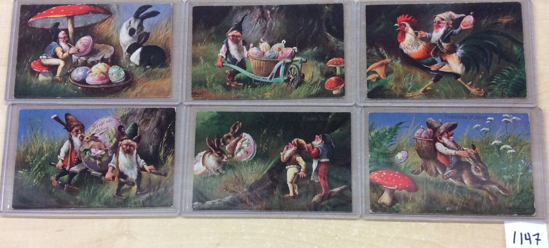 Group of 6 Easter Elves Signed Artist Postcards