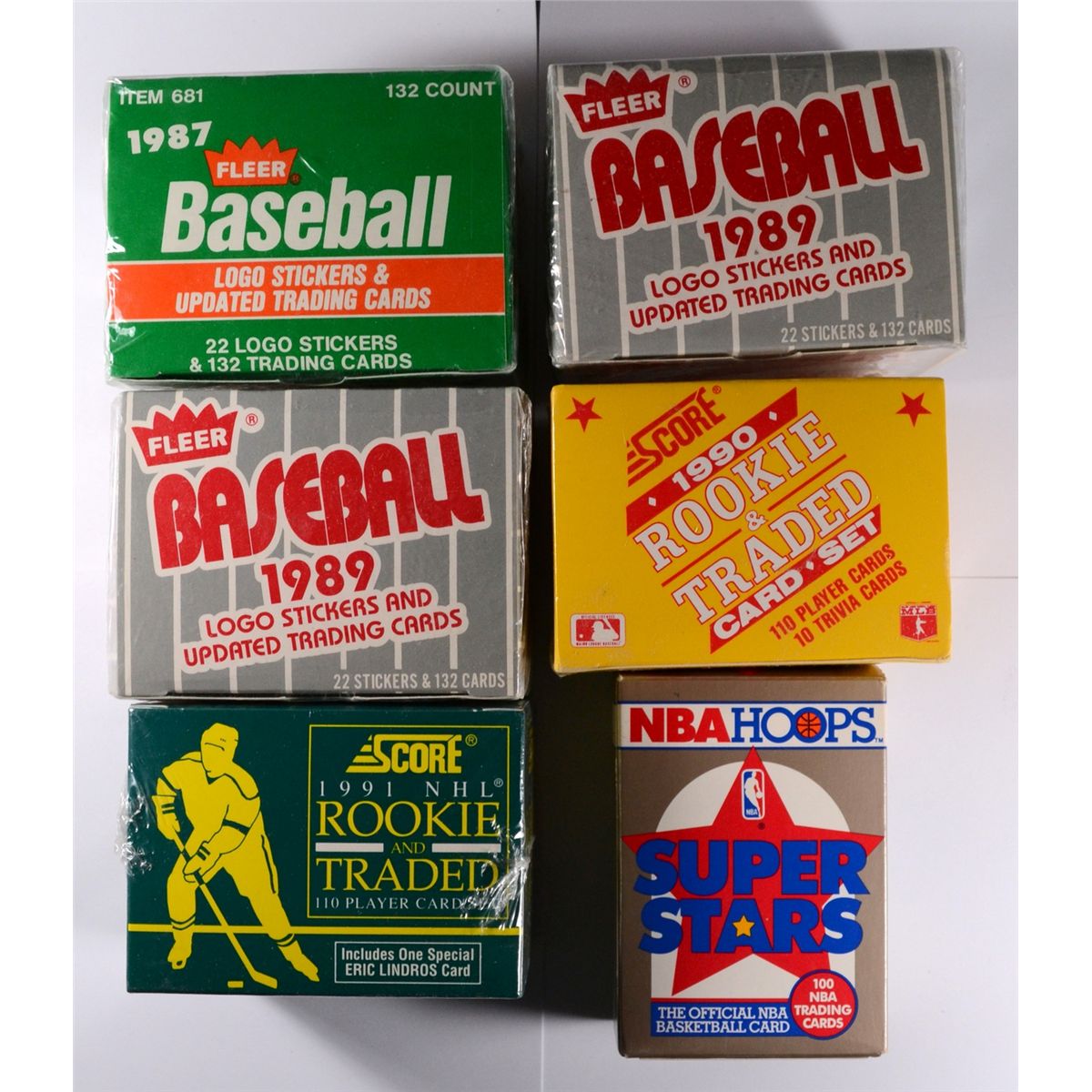 1991 Hoops SuperStars, 1991 Score Hockey Rookie & Traded, 1990 Score Baseball Rookie & Traded, 1987 Fleer Baseball Update Set, (2) 1989 Fleer Baseball Update Sets. EST 30.00-35.00