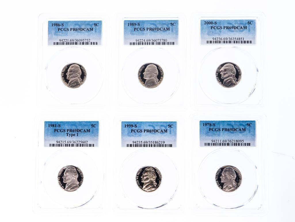 Group of 6 USA Five cents PCGS Graded PR69CAM