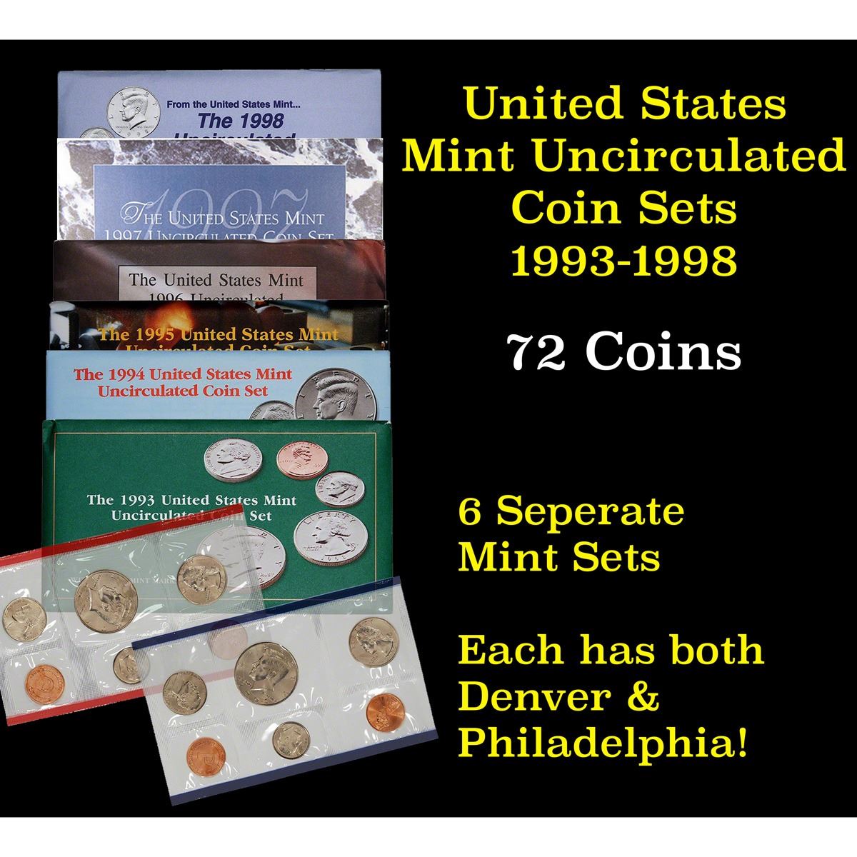 Group of 6 United States Mint Sets in Original Government Packaging 1993-1998 61 coins Grades. A group of 6 United States Mint Sets. Dates range from 1993-1998. Each set Contains both the entire Philadelphia and Denver Issues for that year. All sets are in original government packaging.