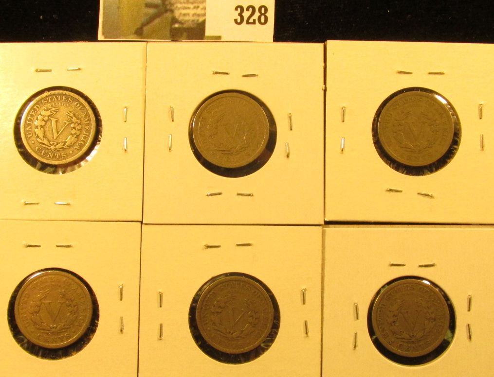 Group of (6) V Nickels, 1908, 1909, 1910, 1911, 1912 & 1912-D, all VG, group value $19