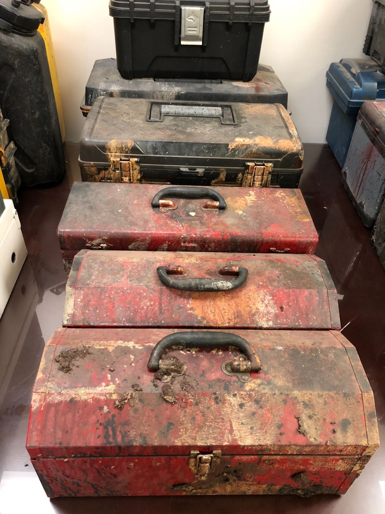 a group of 6 assorted toolbox props from popular sci-fi series