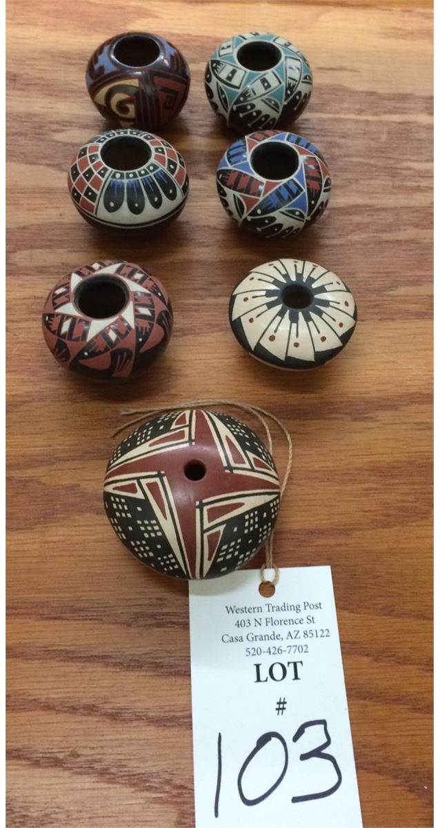 There are 7 various handmade miniature pots from Mata Ortiz in this lot for 1 money! All signed and in good condition. Please look closely at pics to see what you will receive in this lot. Shipping: There will be a $7 handling / packaging fee for shipping this lot. The actual cost of postage will be added on top of that.
