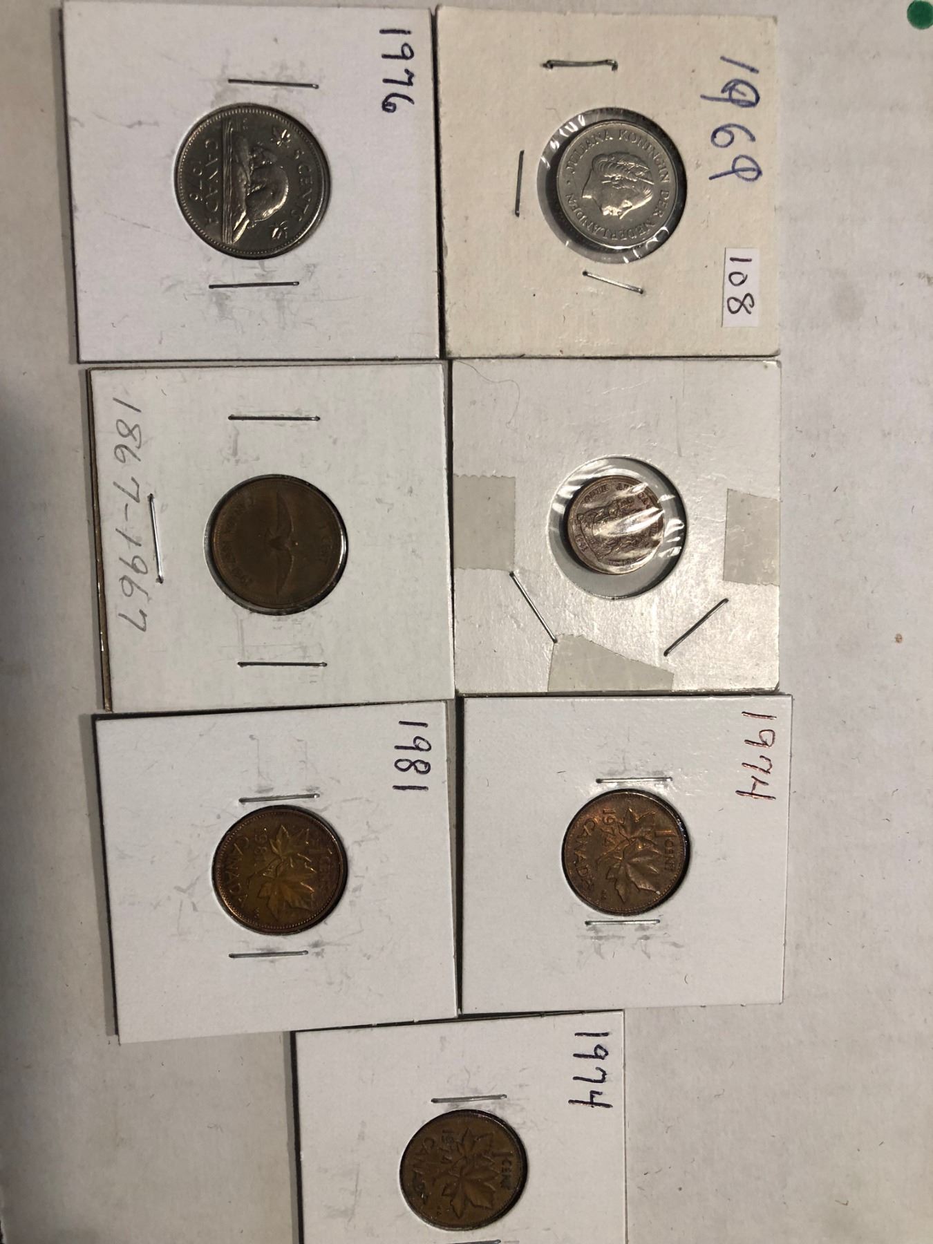 Group of 7 World Carded Coins Assorted Countries Mints and Dates