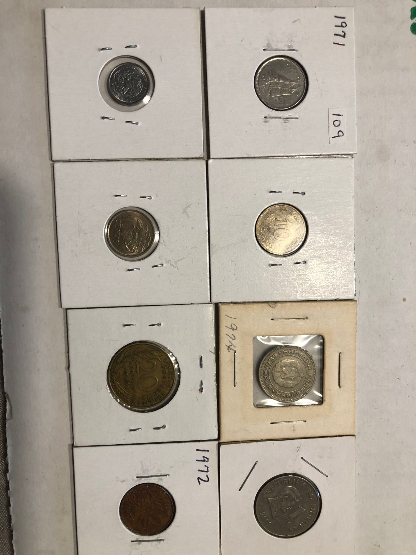 Group of 7 World Carded Coins Assorted Countries Mints and Dates