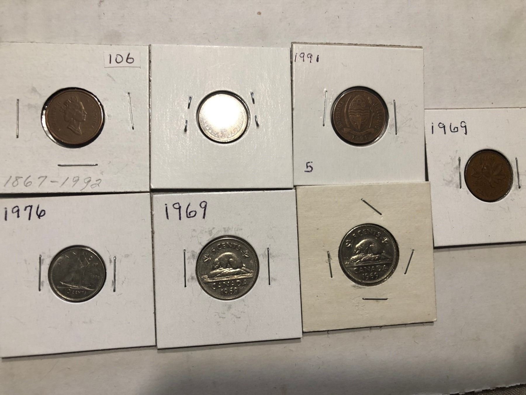 Group of 7 World Carded Coins Assorted Countries Mints and Dates