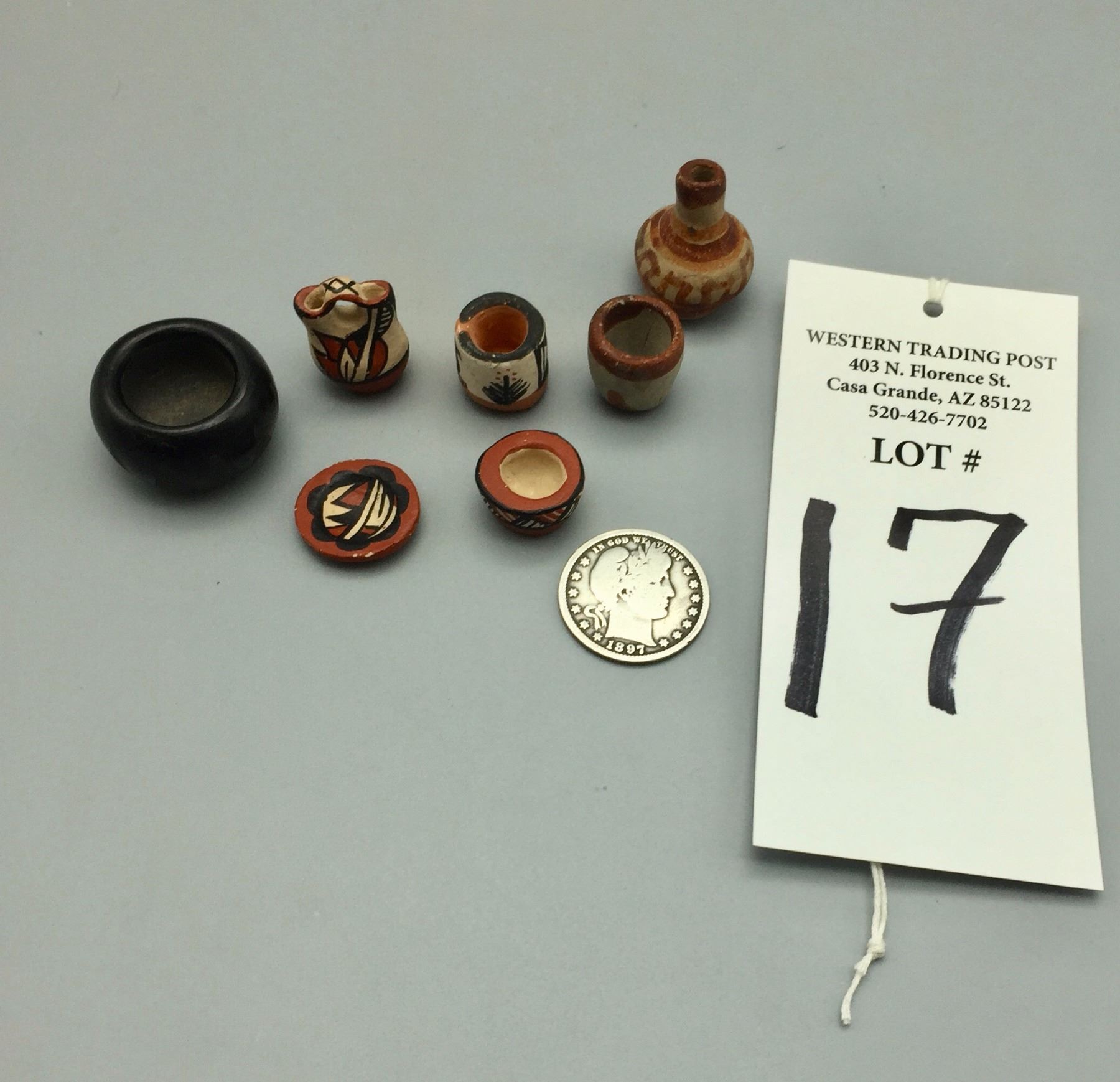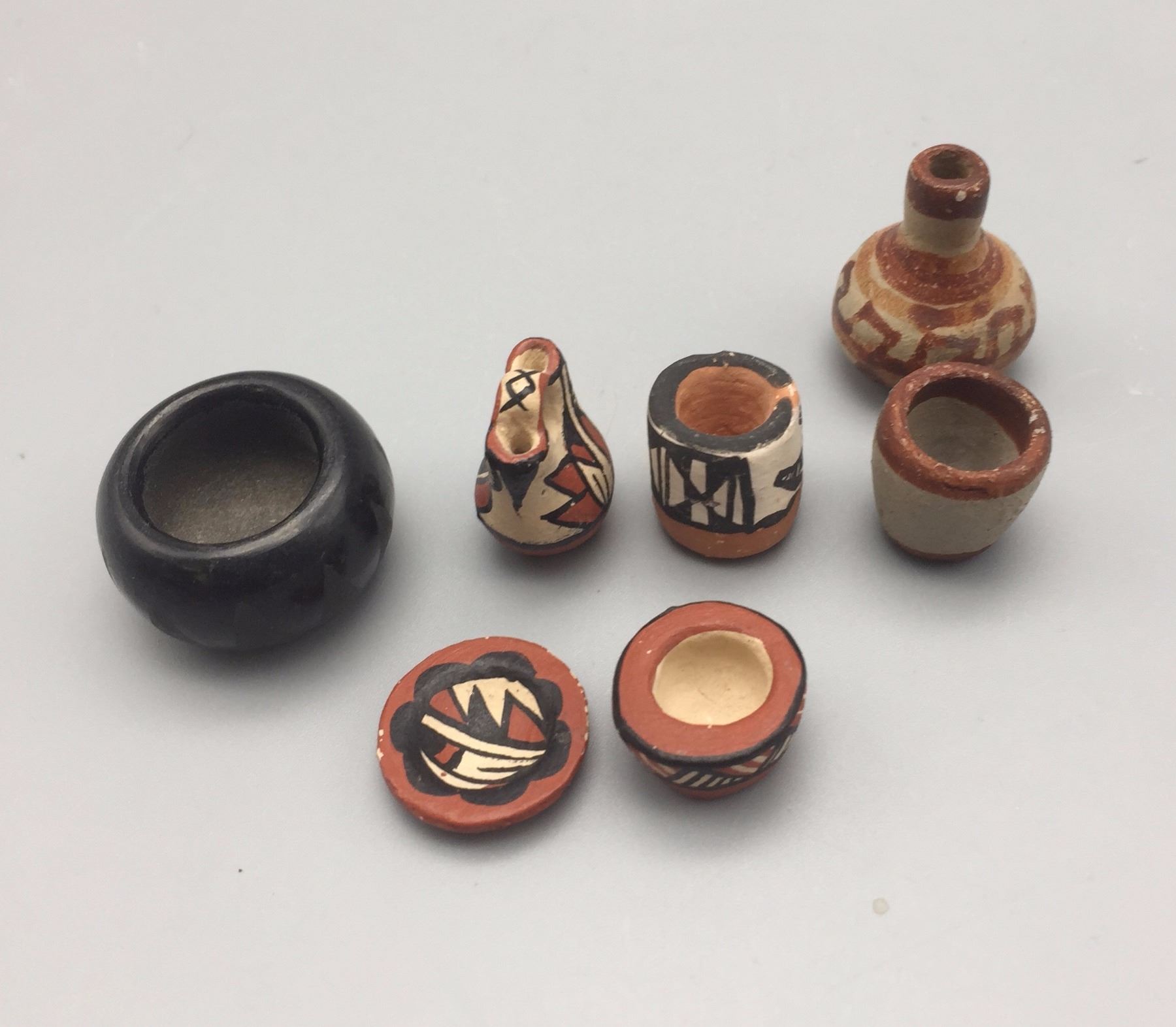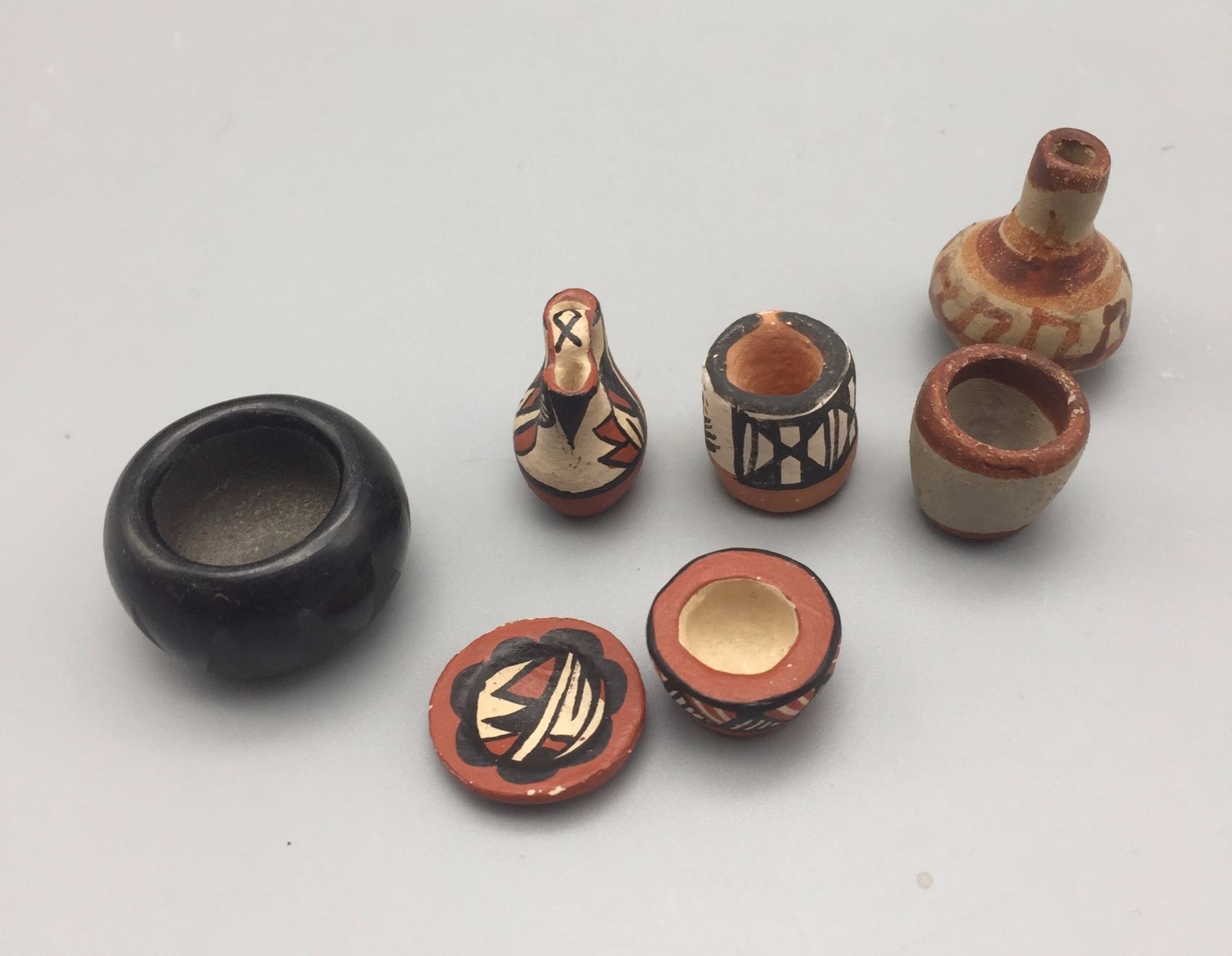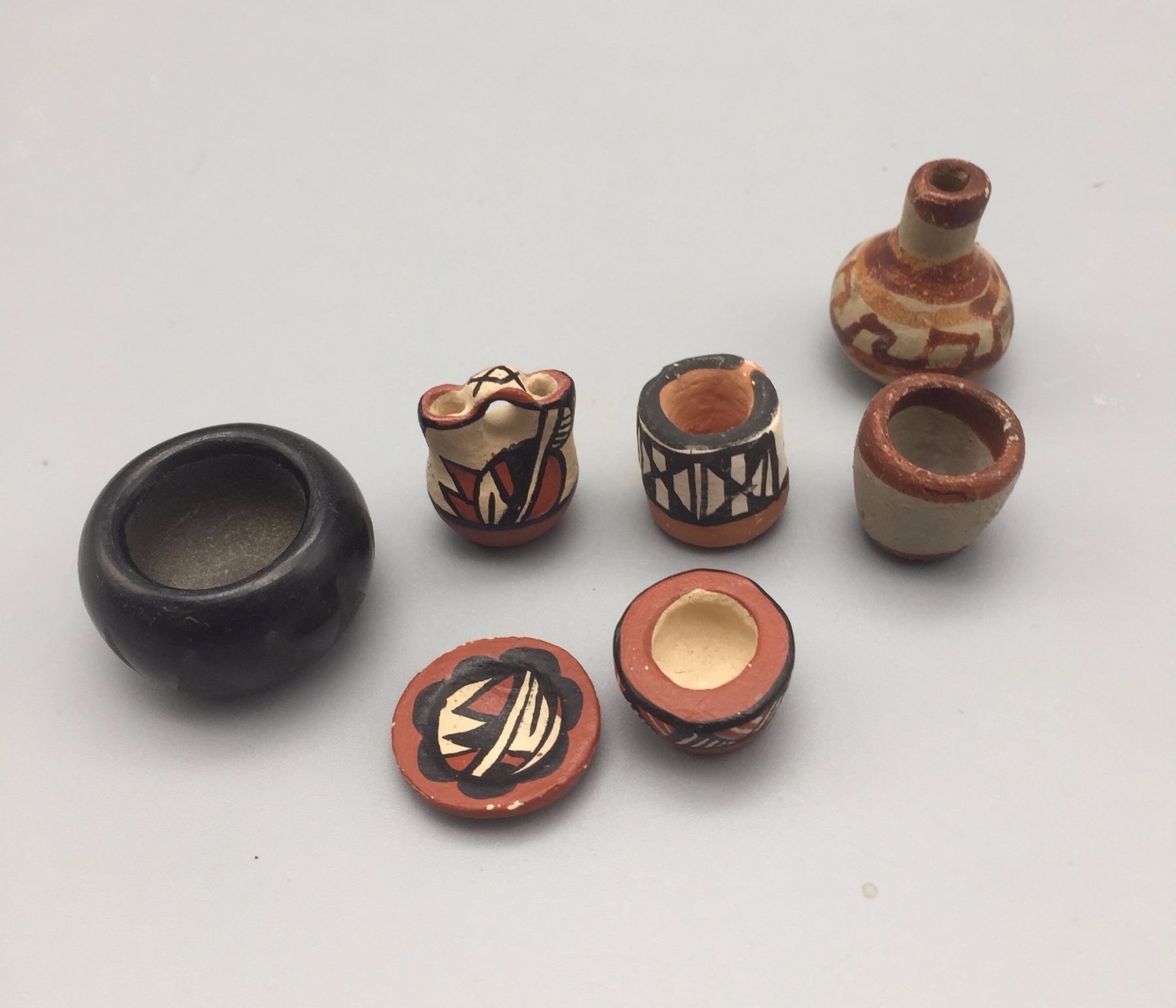 Maker: Various makers. Approx. Age: Vintage to fairly modern. Size: 1/2” to 1” w x 1/8” to 1” h. Additional Info: Group of 8 fine miniature pottery items. Condition: Good for their age, normal wear expected. Please look closely at the pictures - they are an important part of our description. Shipping: There will be a $7 handling / packaging fee for shipping this lot. The actual cost of postage will be added on top of that.