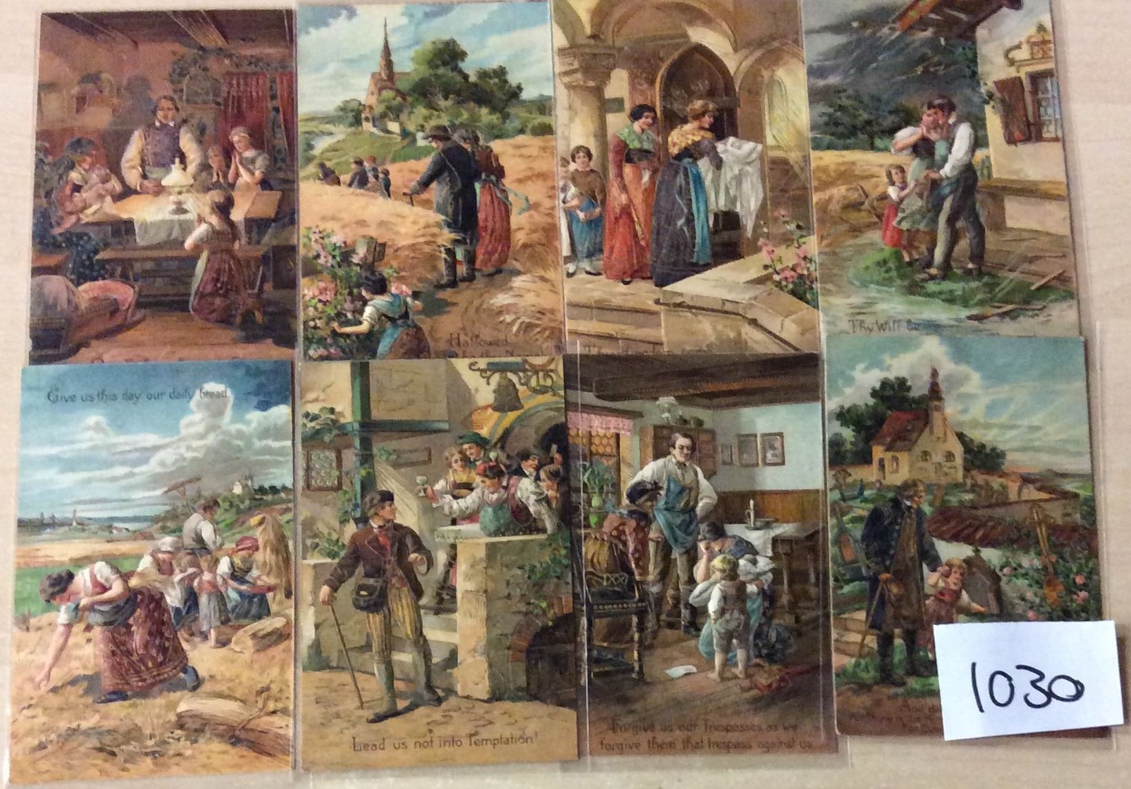Group of 8 Lord's Prayer Religious PFB Postcards