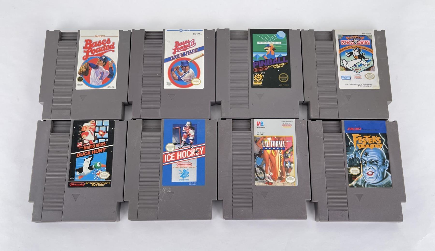 Bases Loaded, Bases Loaded II, Pinball, Monopoly, Mario Duck Hunt, Ice Hockey, California Games, Festers Quest.