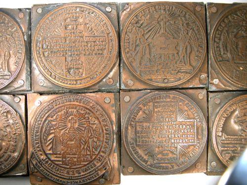 Group of eight Copper-Clad Lead Wood-Mounted Printing Blocks for Leroux, labelled: 193, 193R, 194, 198, 199, 200, 202R and 206