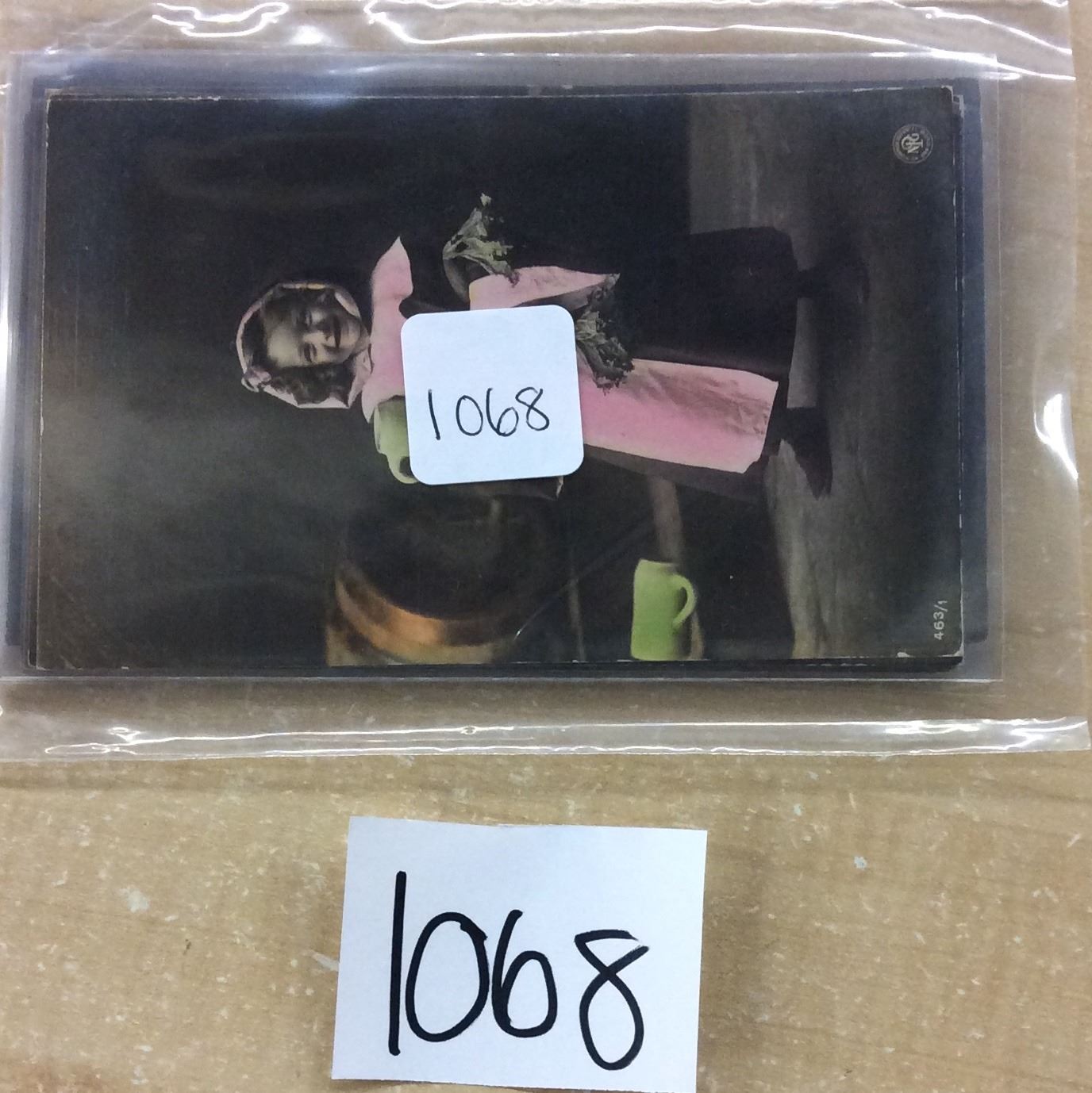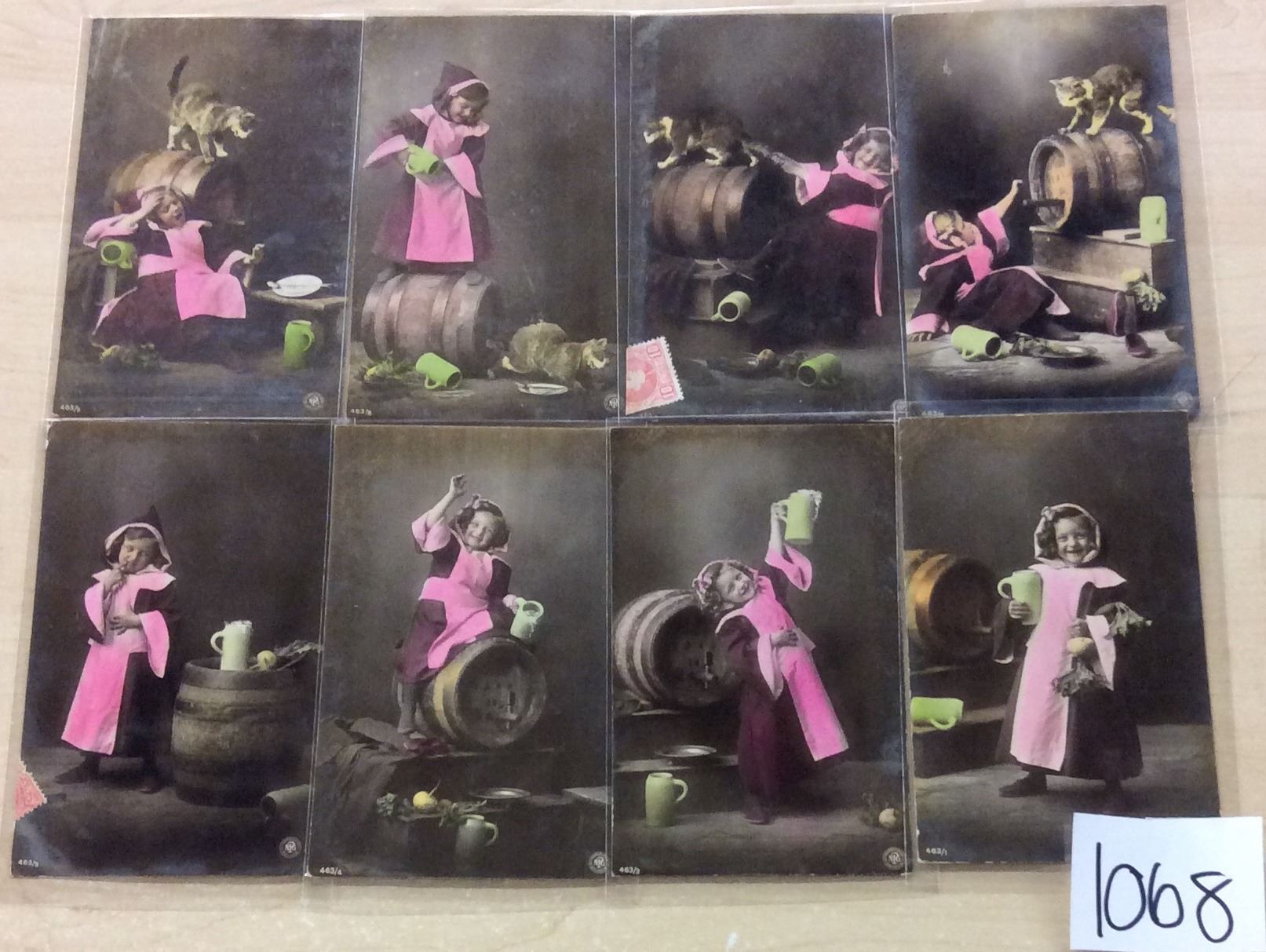 Group of 8 Tinted Photo Postcards of Girl Drinking & Cat