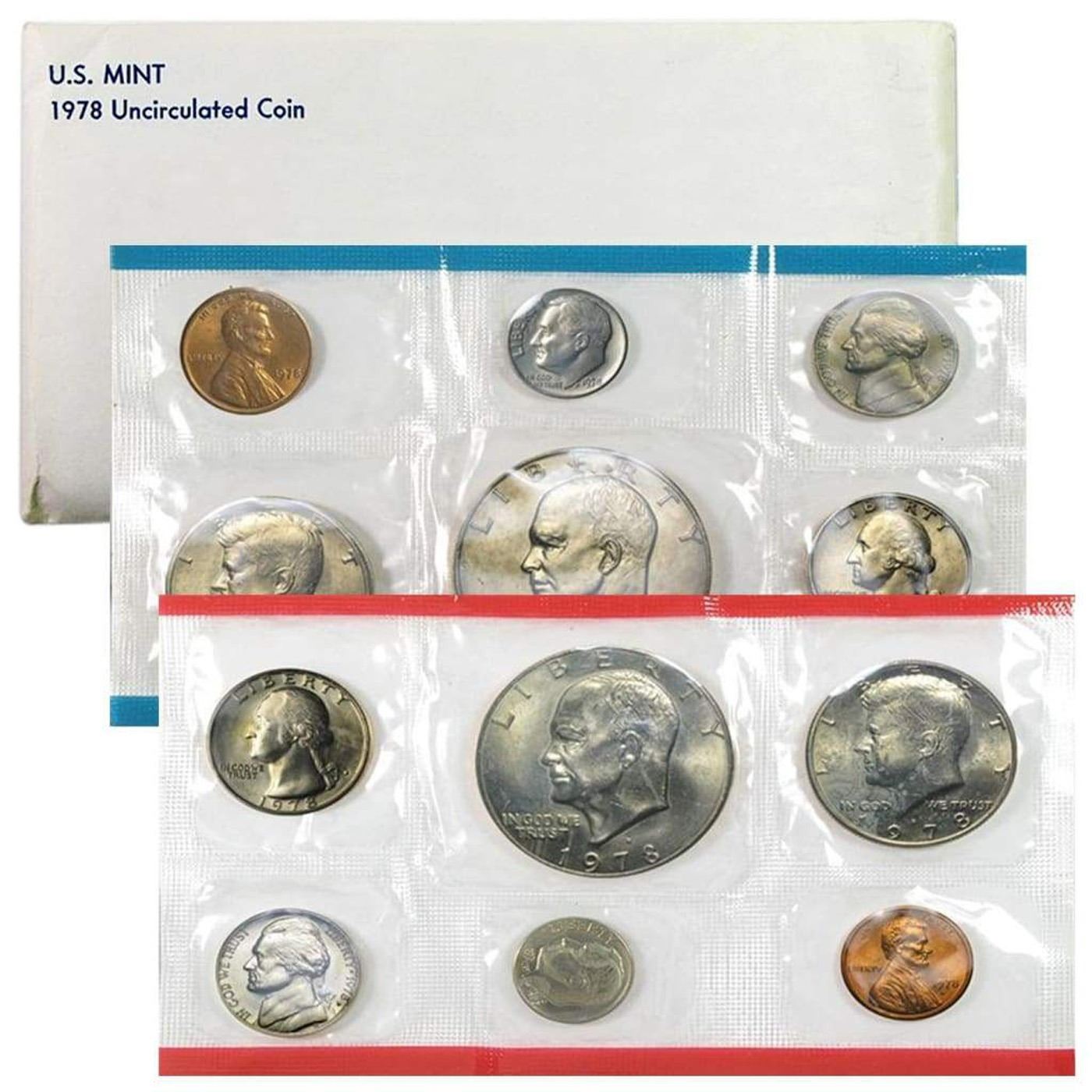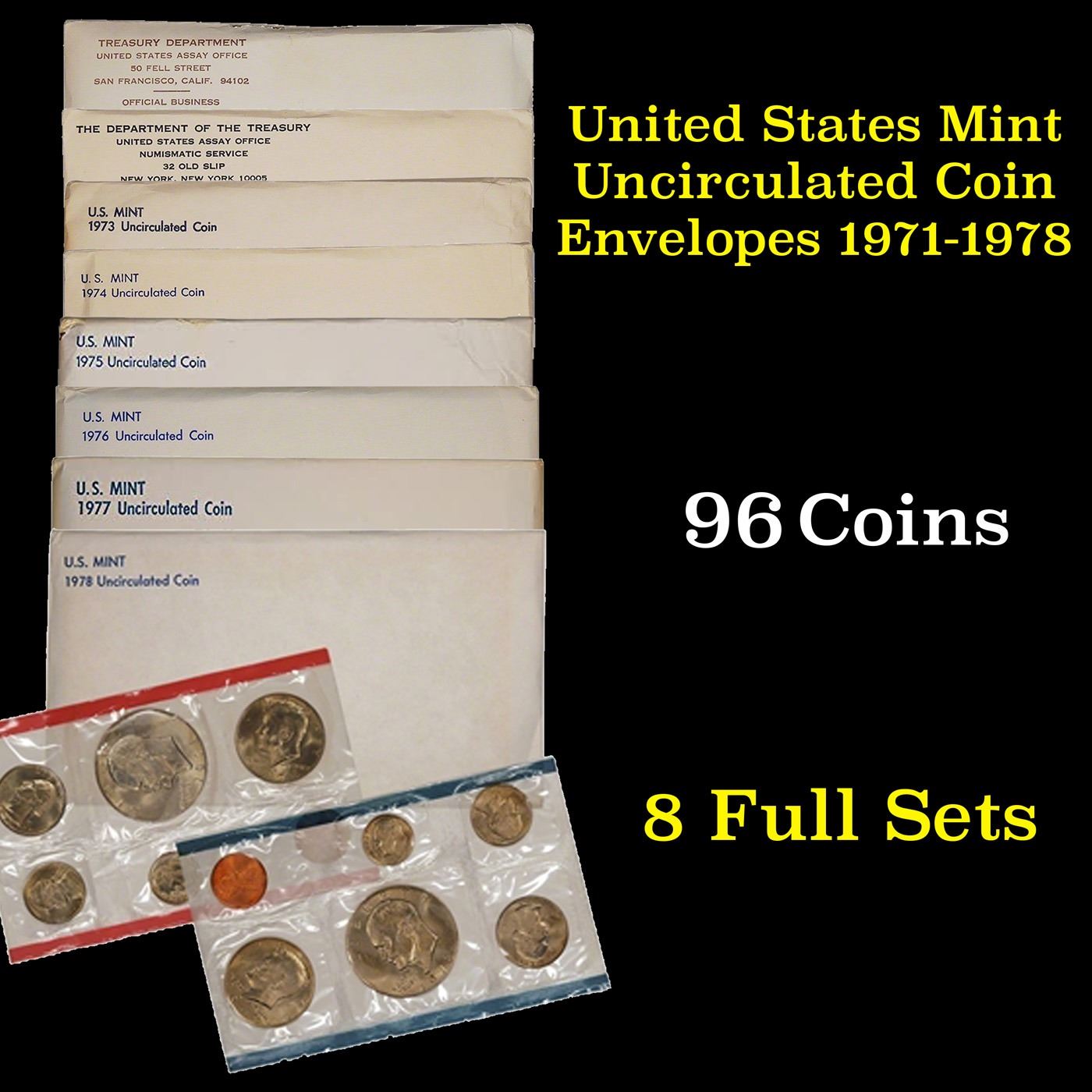 Group of 8 United States Mint Uncurculated Coin Sets In Original Government Packaging 1971-1978 96 c