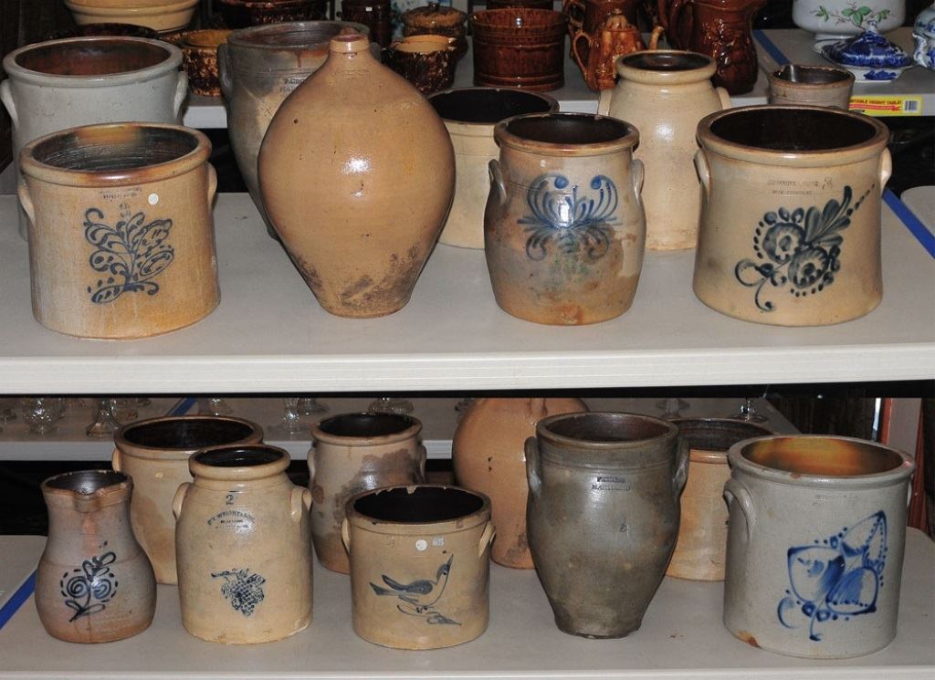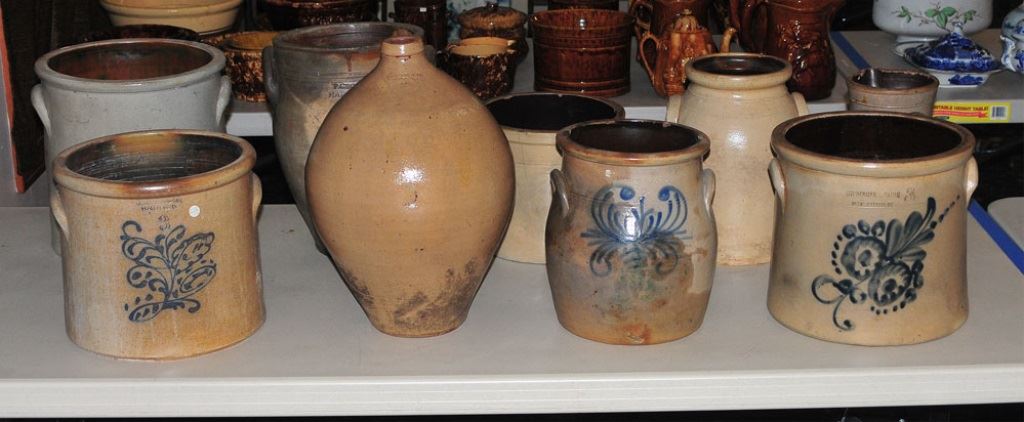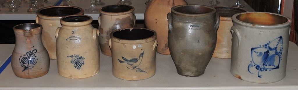 CONDITION REPORT: pitcher with flakes at rim; chips, cracks, and stains throughout