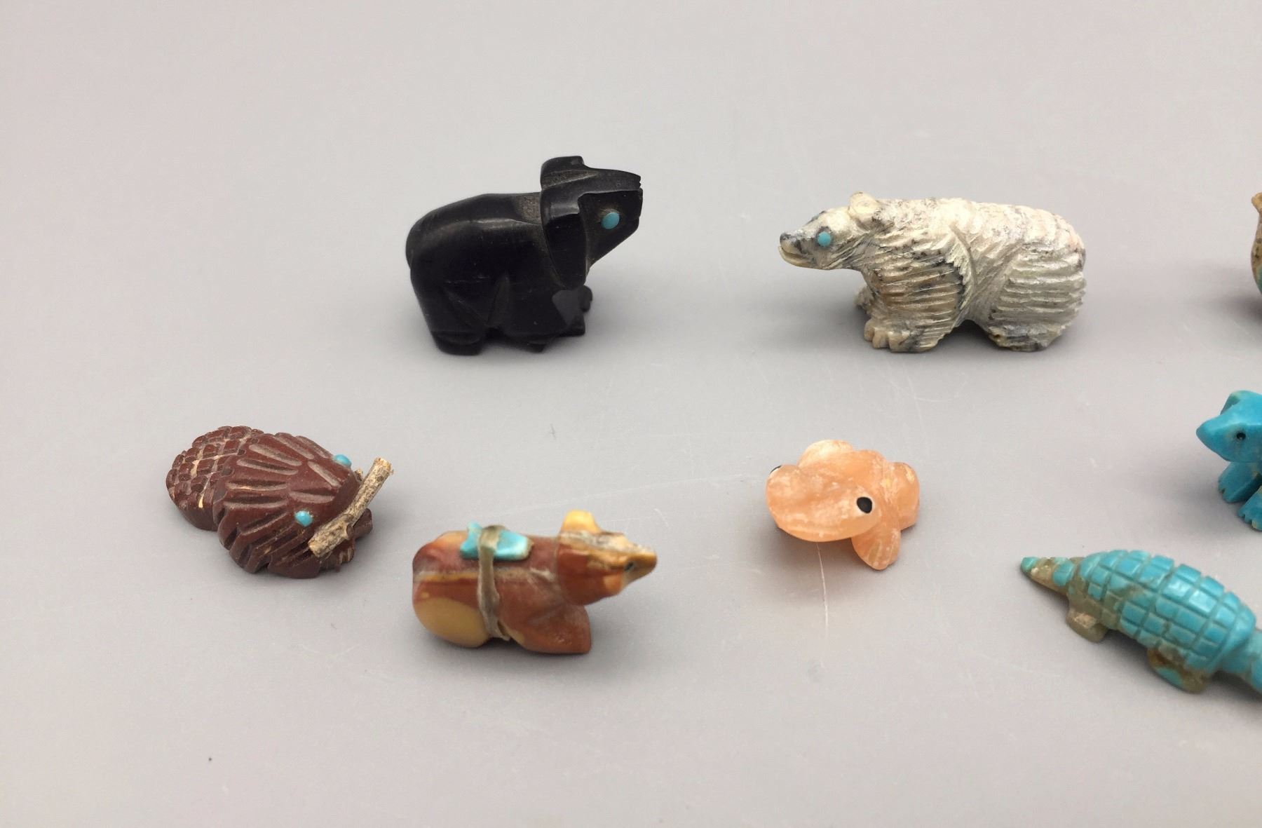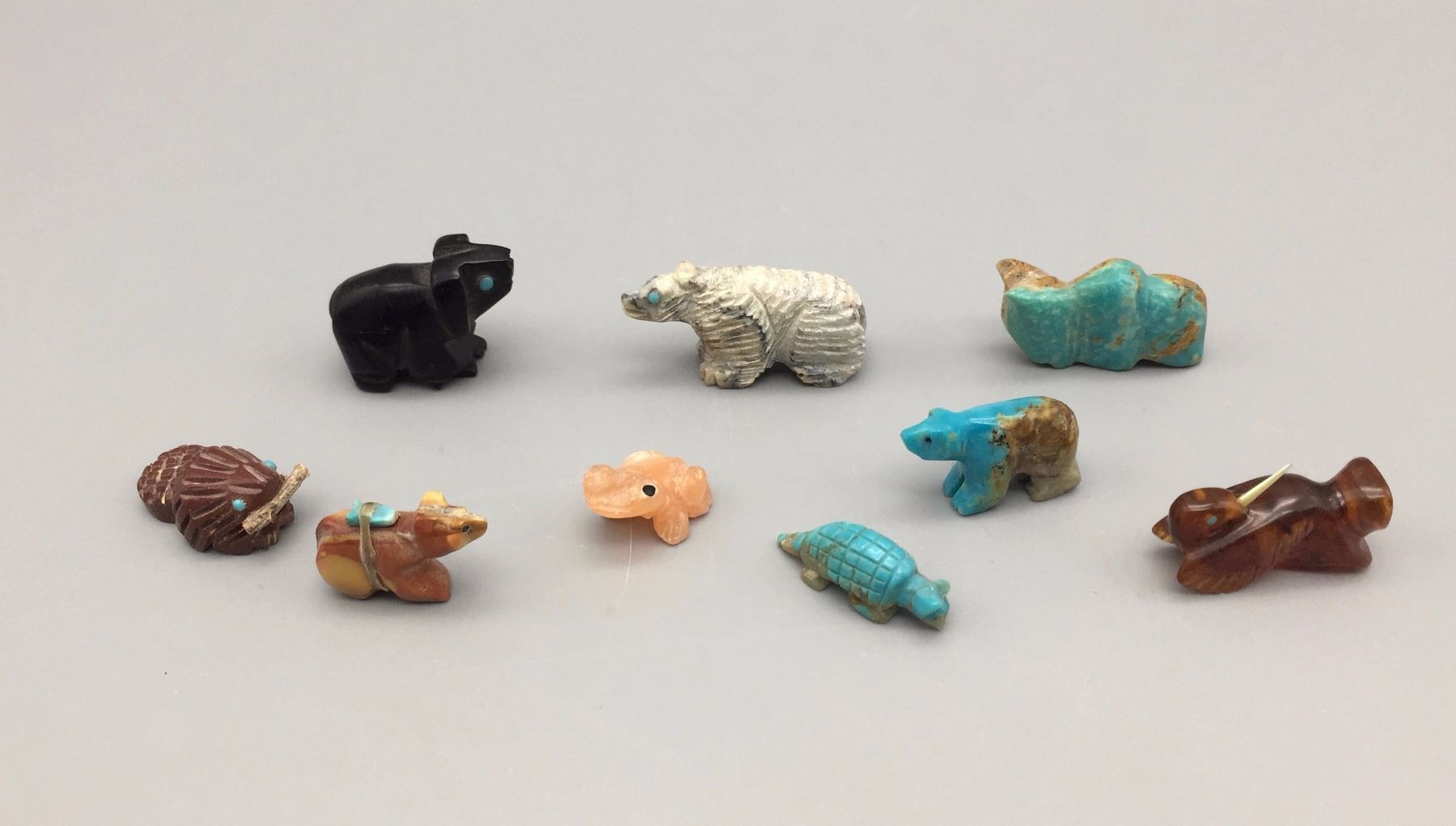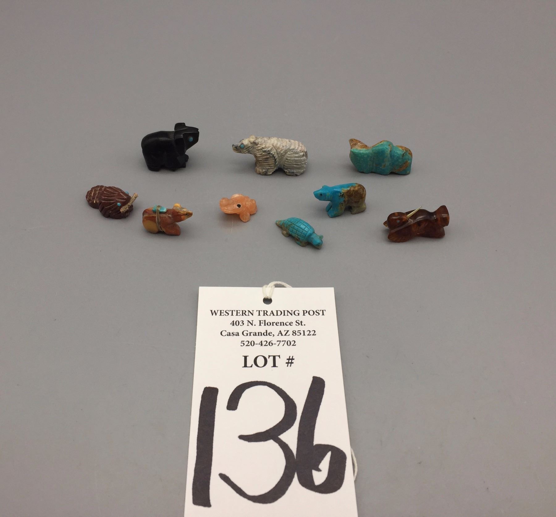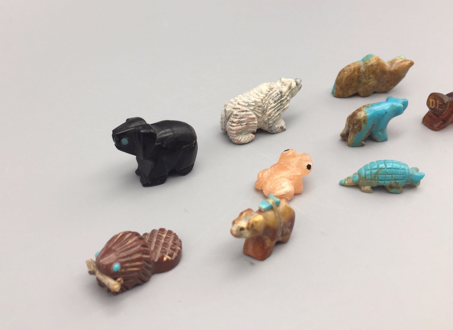 Maker: Various artists. Approx. Age: Circa 1970s or newer. Size: Measure from 5/8” to 1 3/8” l. Additional Info: Group of 9 Zuni fetishes. Condition: Good for their ages, normal wear expected. Please look closely at the pictures - they are an important part of our description. Shipping: There will be a $5 handling / packaging fee for shipping this lot. The actual cost of postage will be added on top of that.