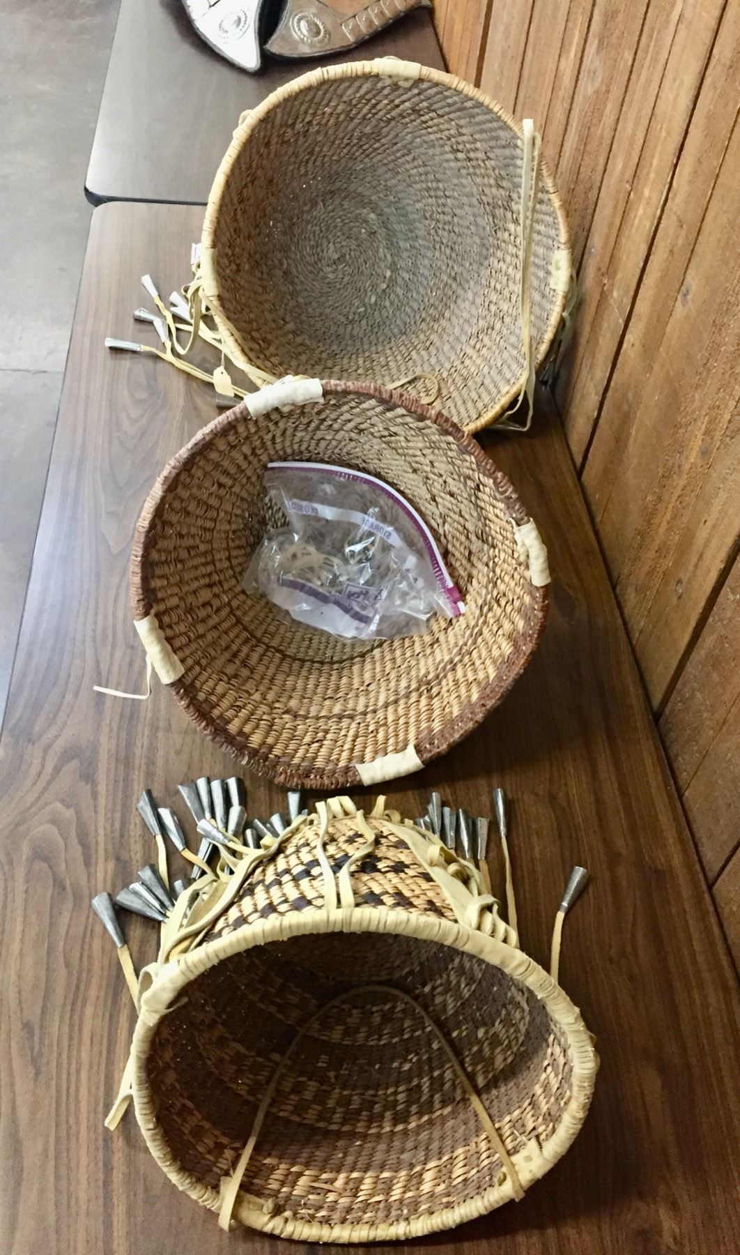 Description: Offered for sale in this lot is a group of 3 Apache burden baskets that vary in size. Maker: Unknown Apache weavers. Approx. Age: Vintage. Size: Varies. Condition: Good for their age, normal wear expected. Please look closely at the pictures - they are an important part of our description. Shipping: There will be a $10 handling, packaging fee for shipping this lot. The actual cost of postage will be added on top of that.