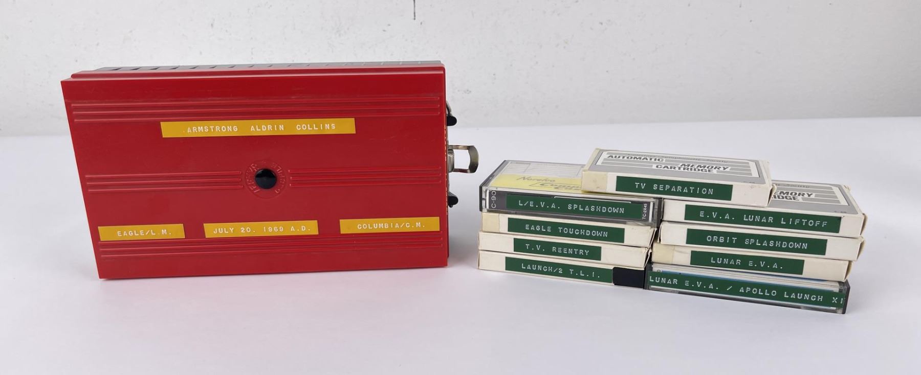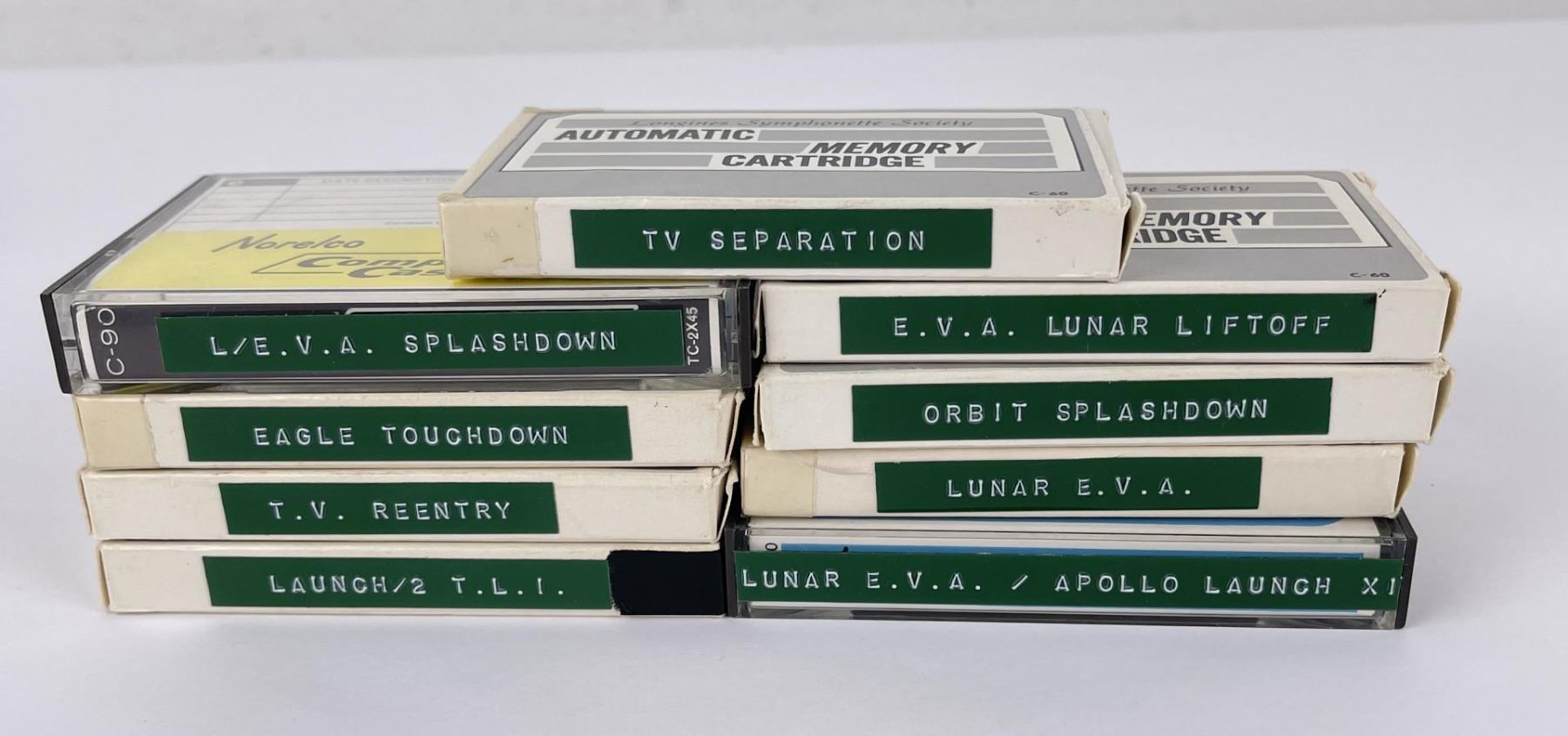Very nice grouping of tapes. They appear to have been recorded from a television or radio broadcast. The moon landing has the famous line The Eagle has Landed. Wonderful quality. Well preserved.