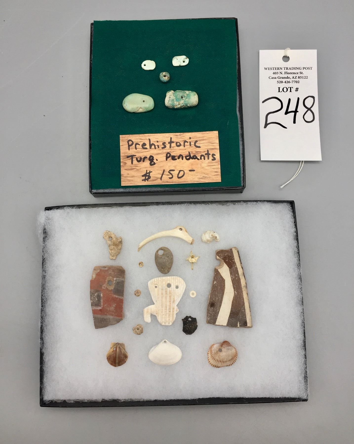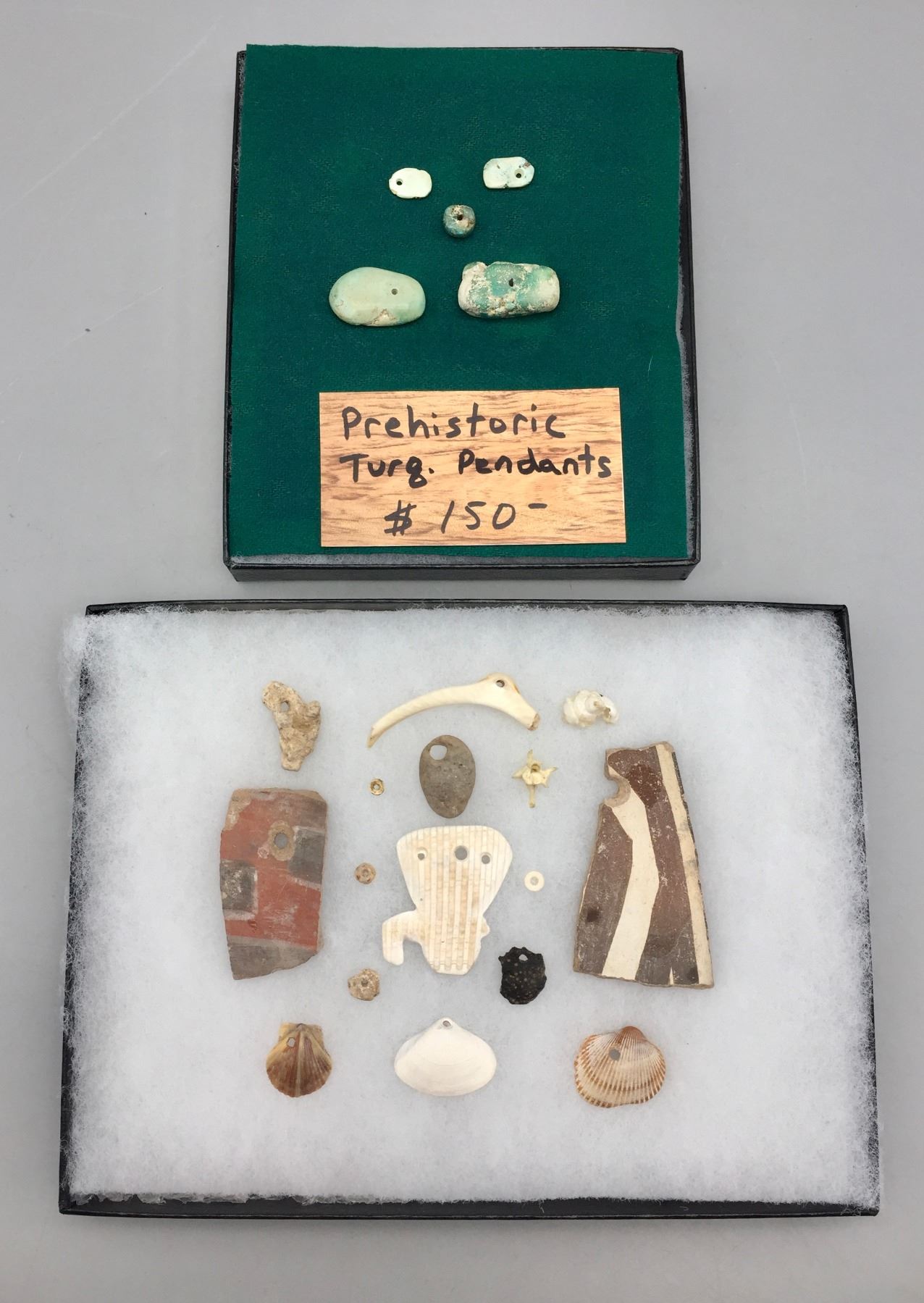 Description: For your consideration we offer this group of artifact displays. The larger frame found by the famous treasure hunter, Orville Mickens. The smaller frames came from the well known Antler site near Young, Arizona. Maker: Unknown.