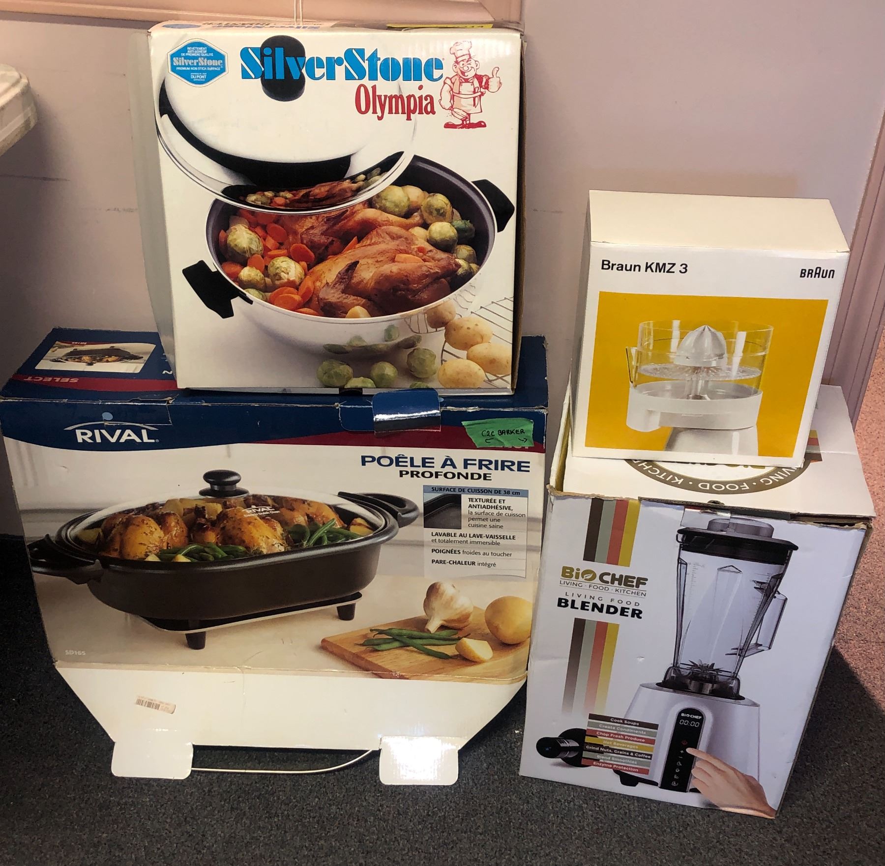 Group of Assorted Kitchen Items - includes Living Food blender, Braun Citrus juicer, SilverStone roaster and Dutch Oven