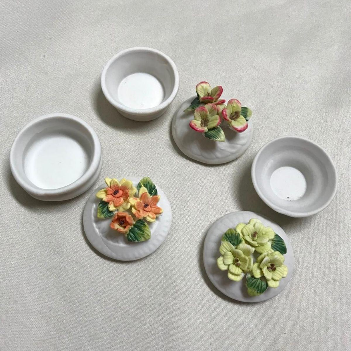 Group of 3 Hand-painted yellow, gold colored flowers bisque porcelain trinket boxes. 1 3/4" D each.