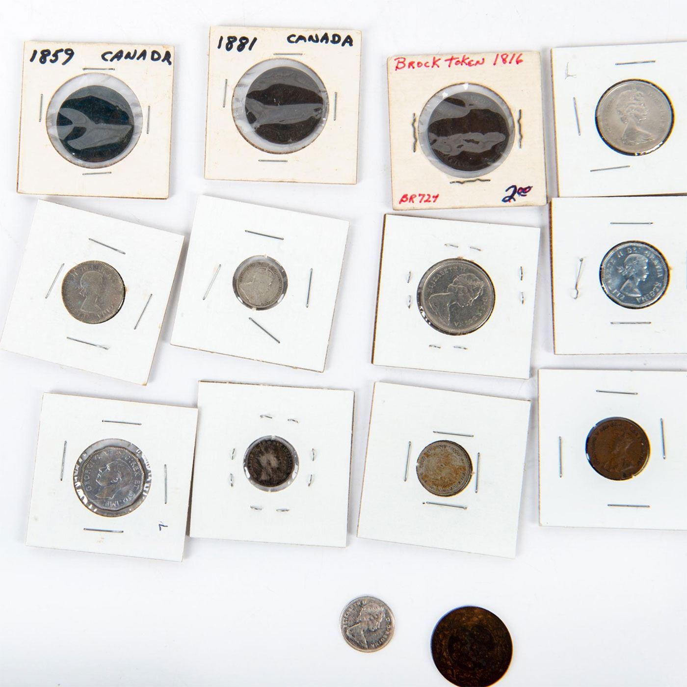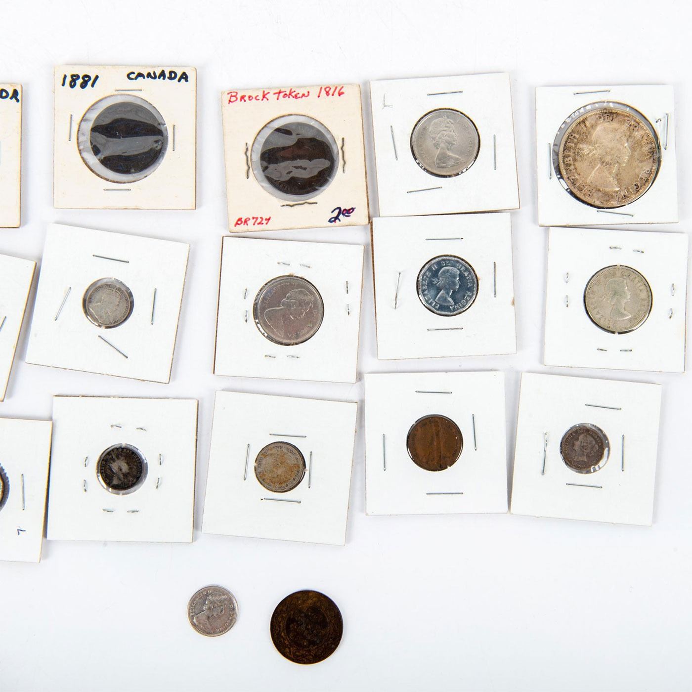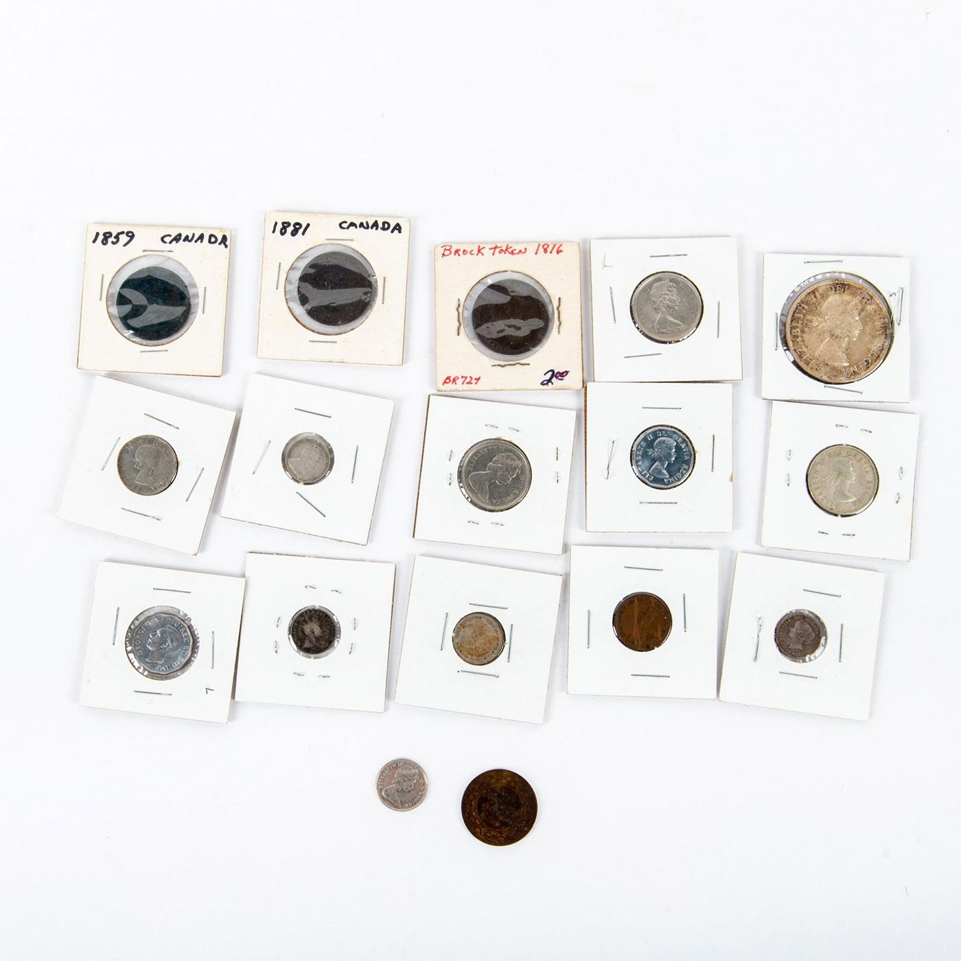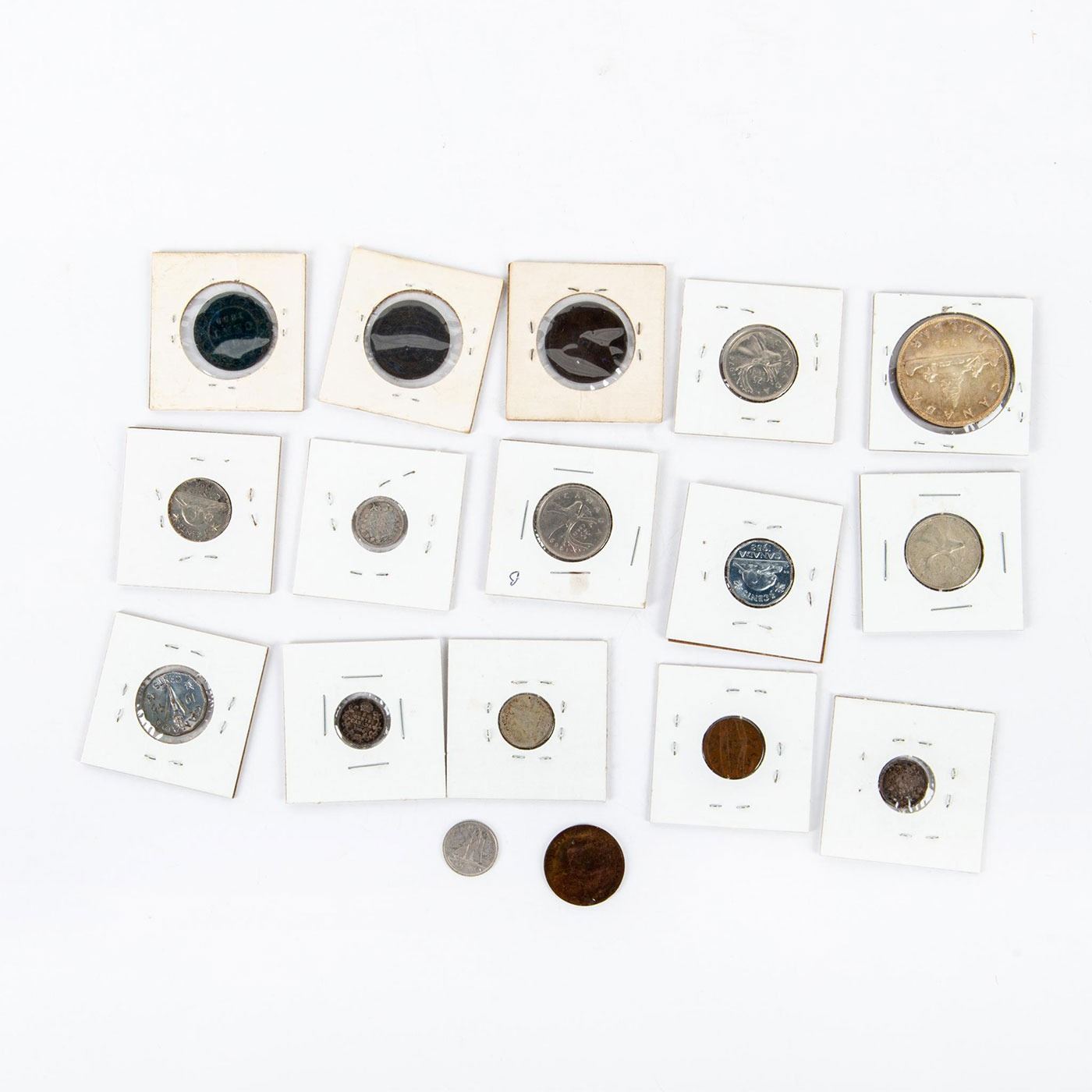 Offered in a variety of circulation years. A lot of 17 Canadian coins in various sizes and denominations. Coins and Currency, Numismatists