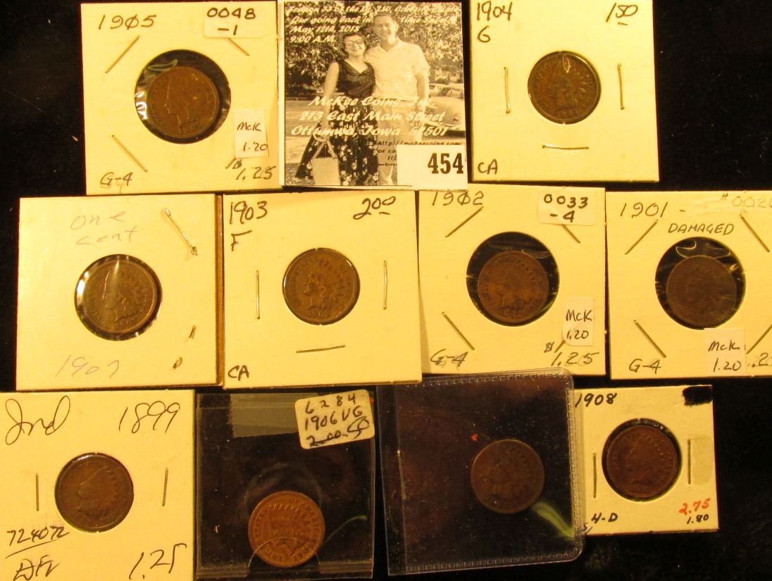 Group of Carded Indian Head Cents: 1893, 99, 1901, 02, 03, 04, 05, 06, 07, & 08. Grades up to Extra